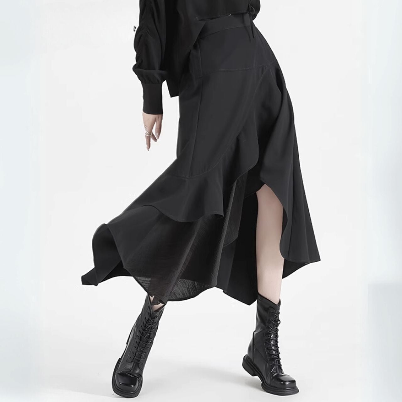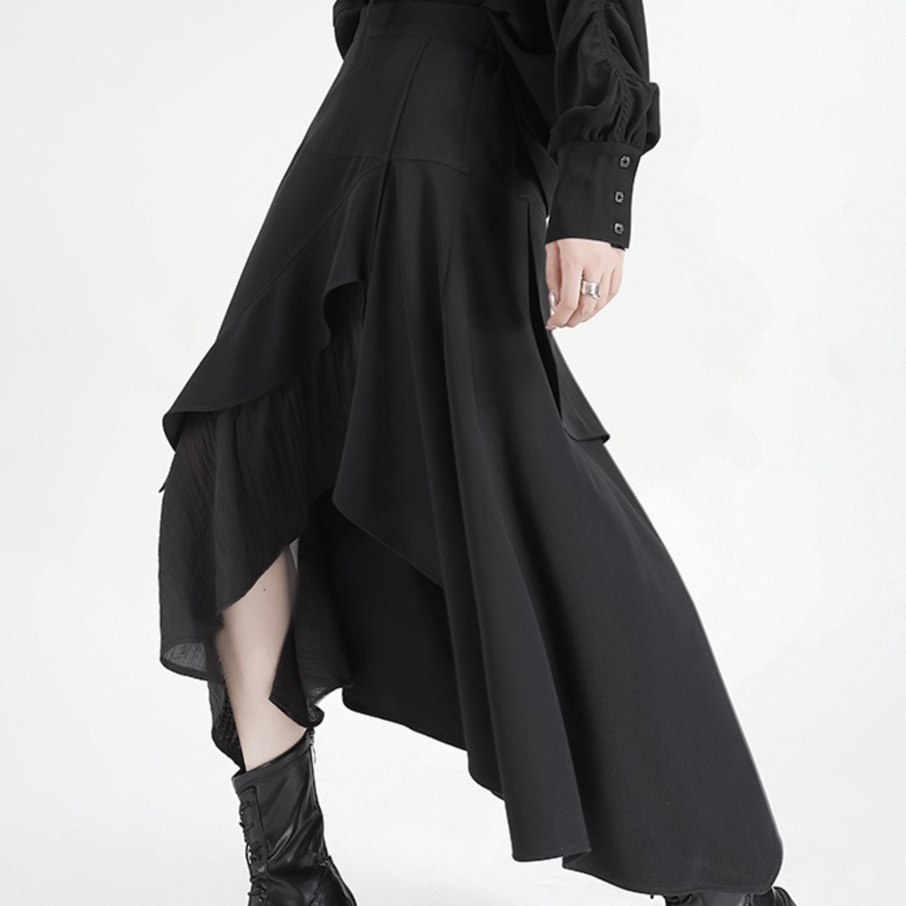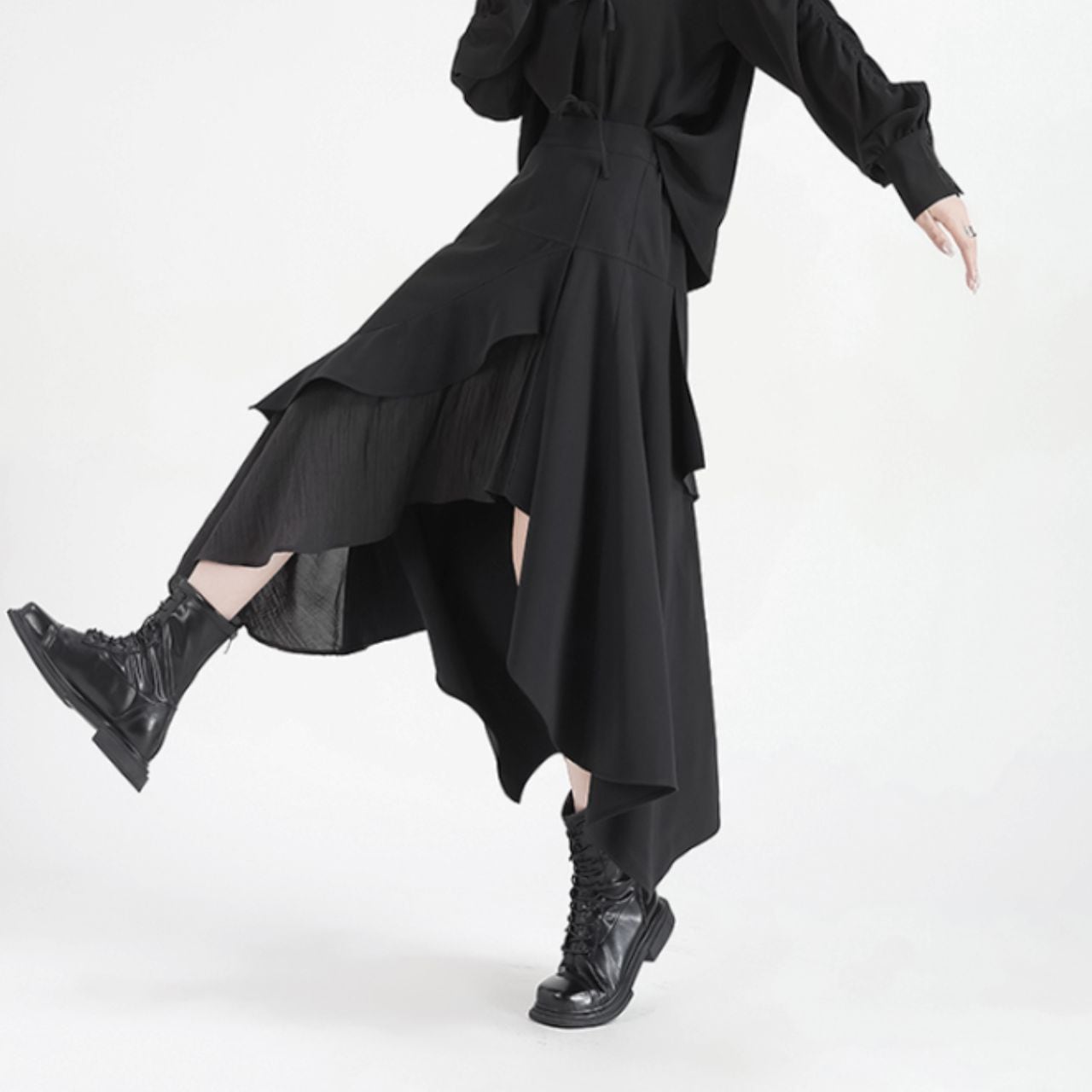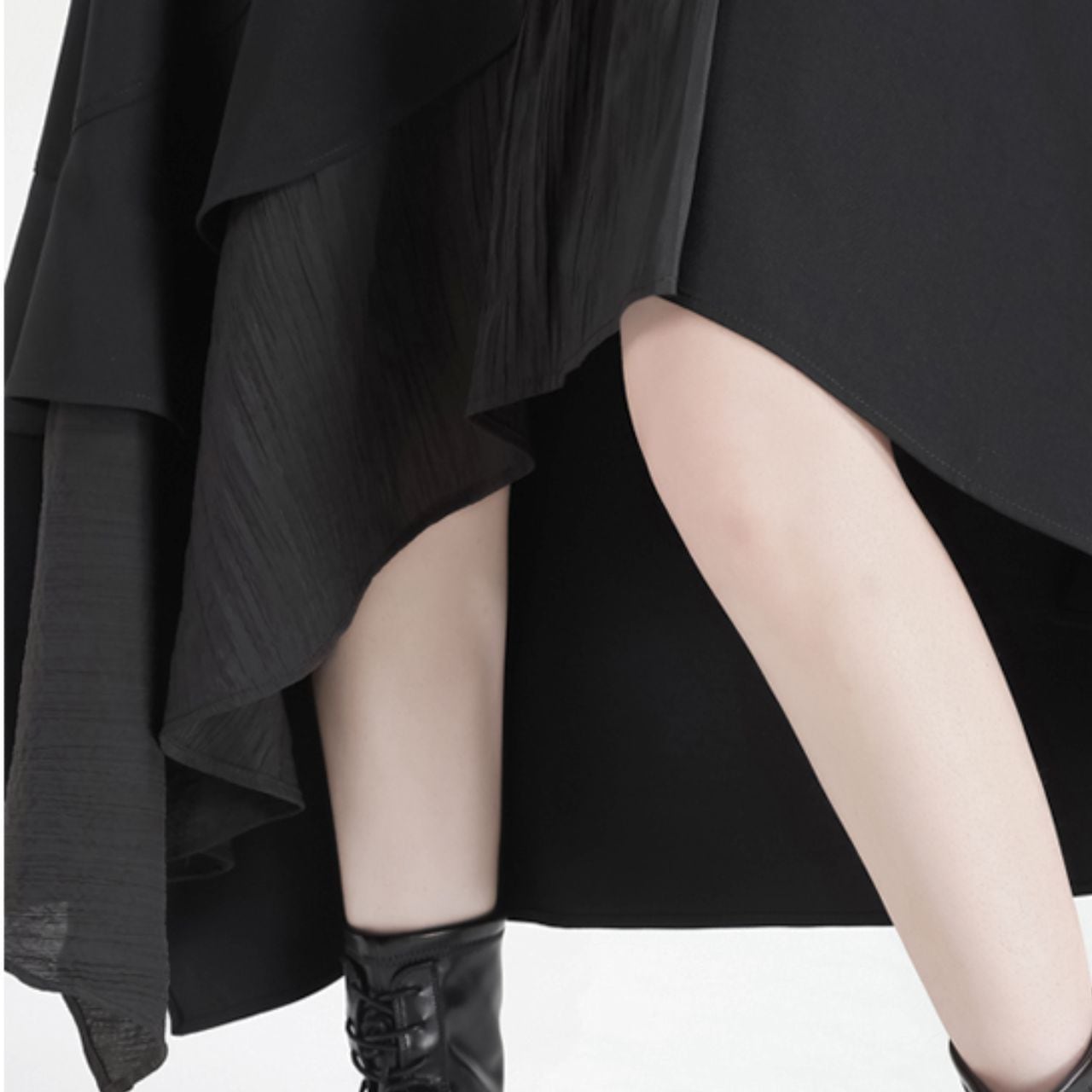 不規則なヘムラインが、歩くたびに軽やかに揺れ動く様子は、周りの視線を独り占めすること間違いなしです。