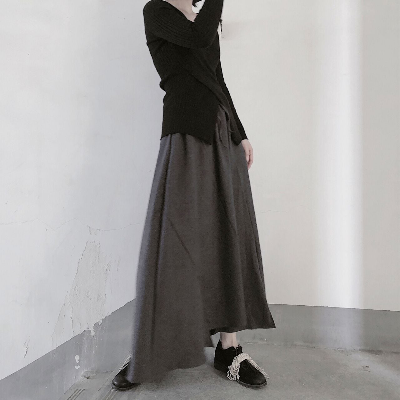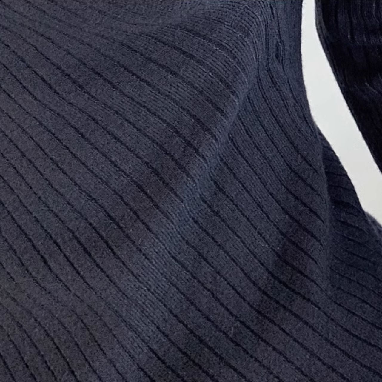 Vネックが女性らしさを演出する一方で、非対称な裾がモダンな雰囲気を醸し出します。