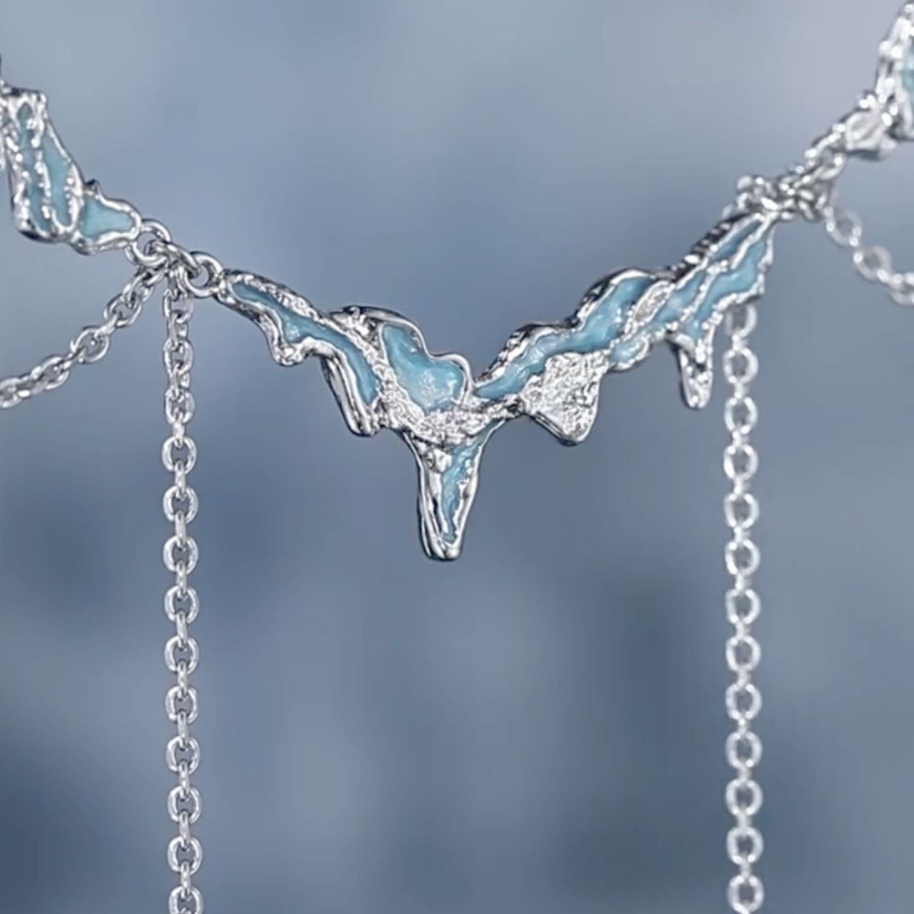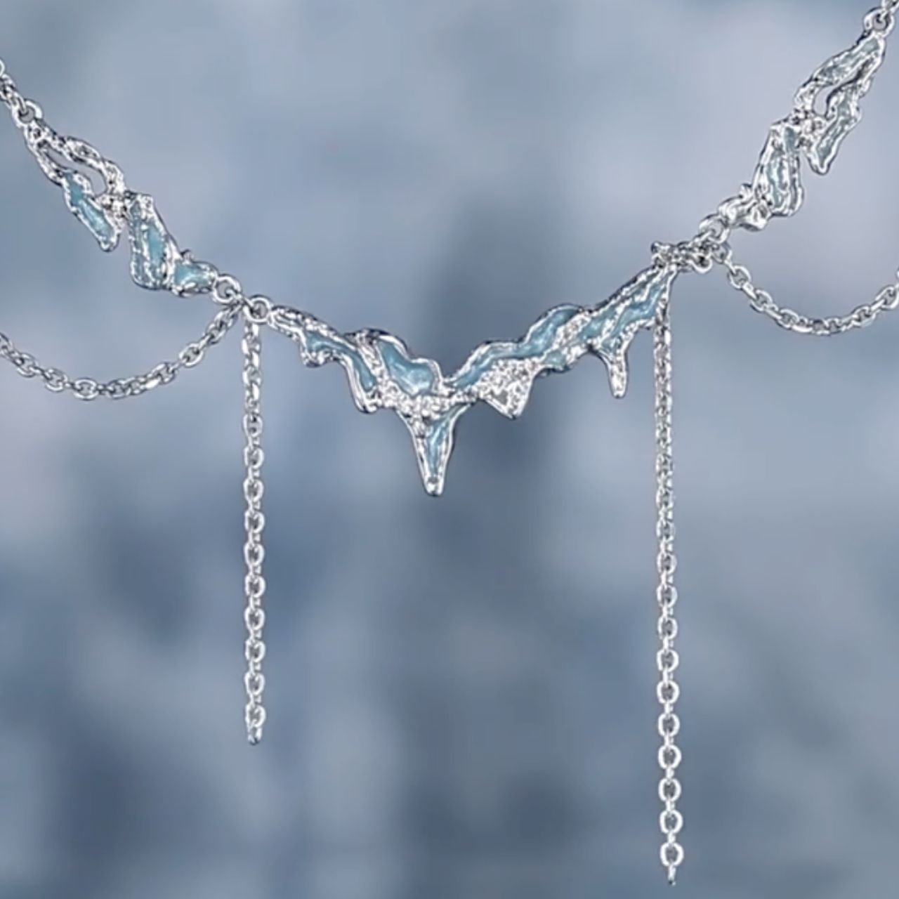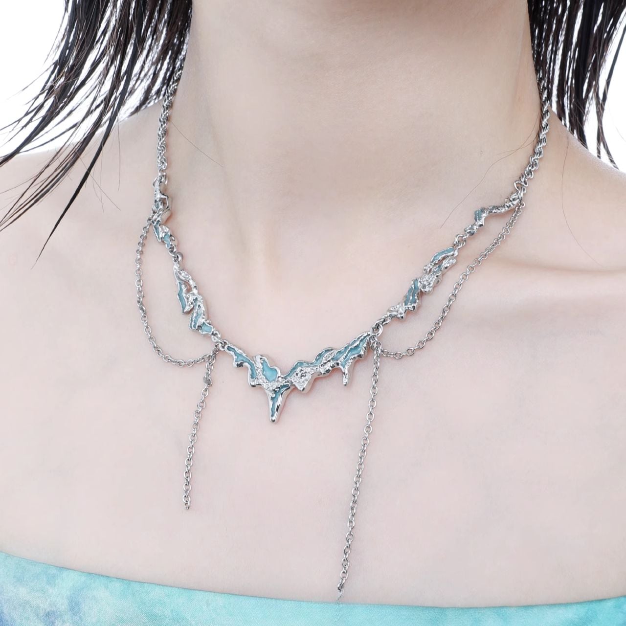 二本のチェーンが、まるで波のように美しく揺れ動き、胸元に軽やかなアクセントを添えます。