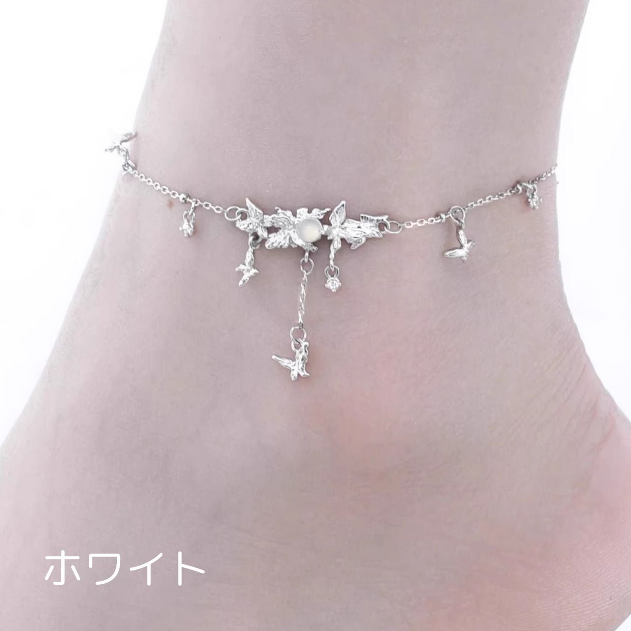 繊細な蝶のモチーフが揺れるアンクレット。