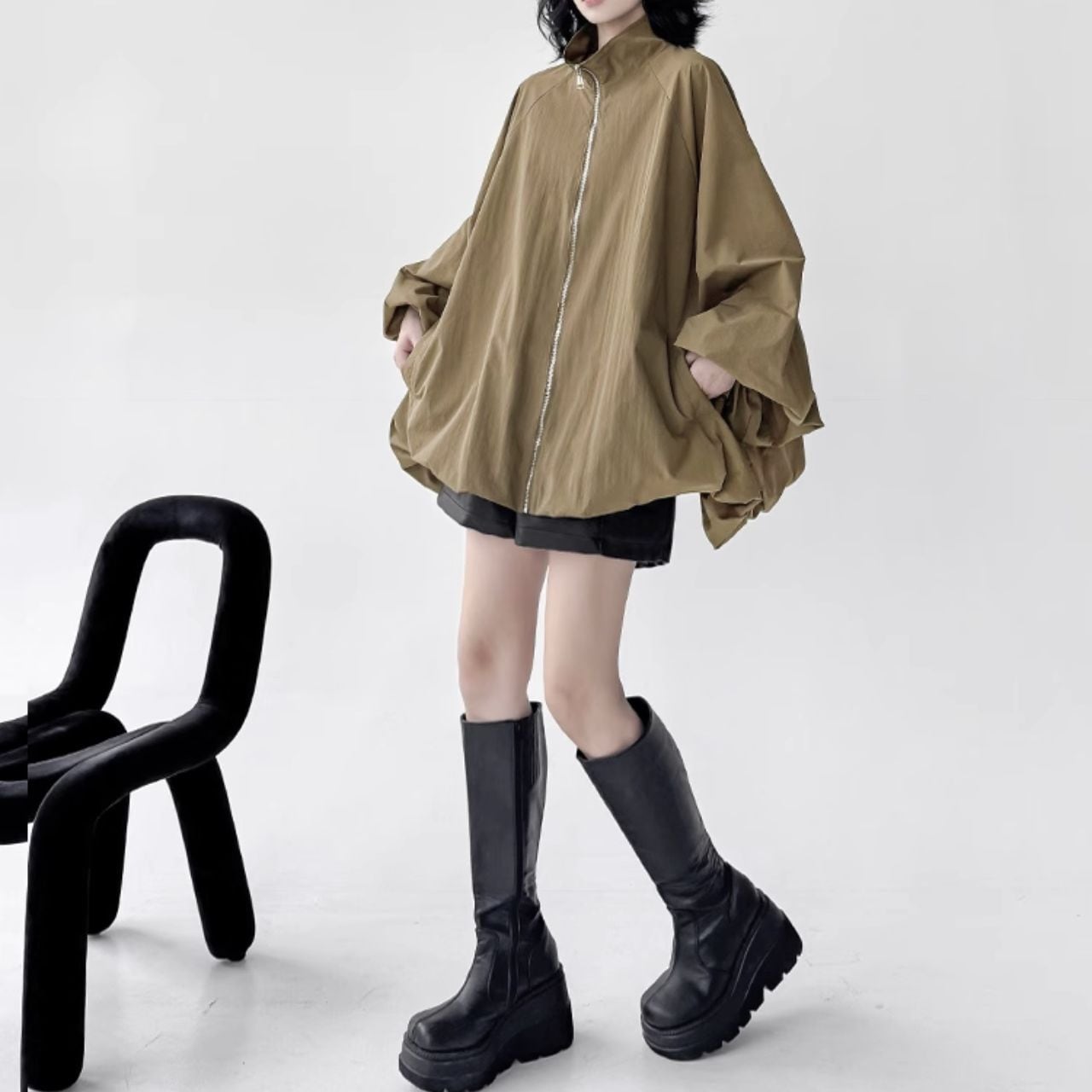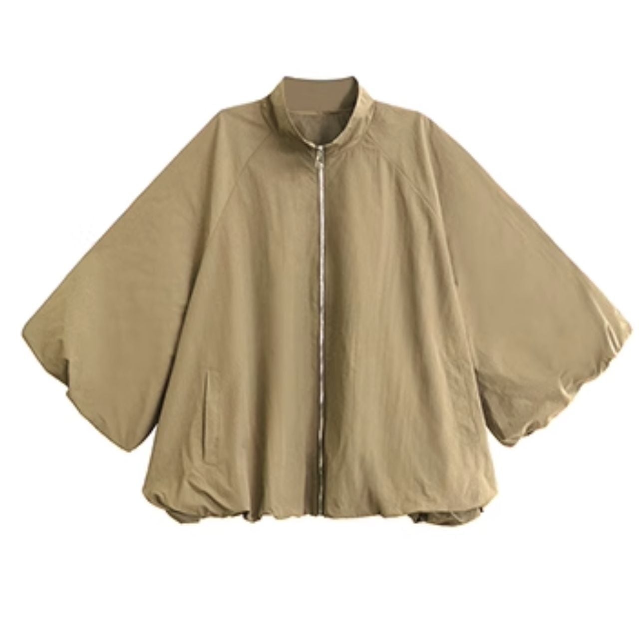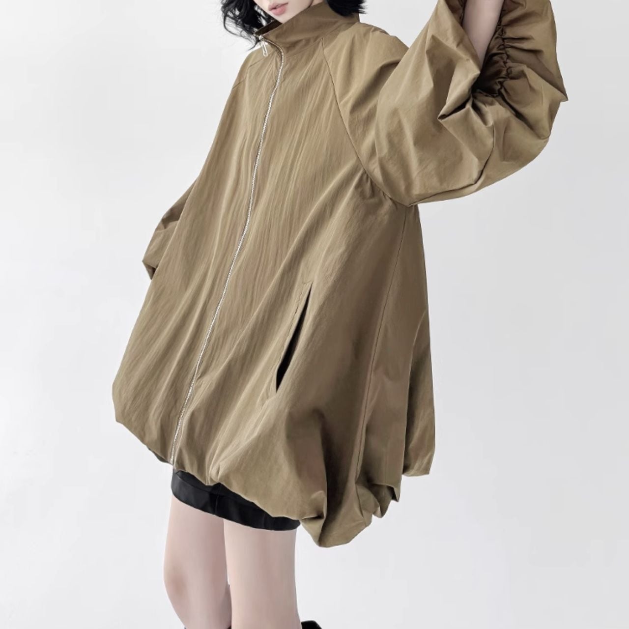 スタンドカラーとバルーンスリーブが特徴的なオーバーサイズジャケット。