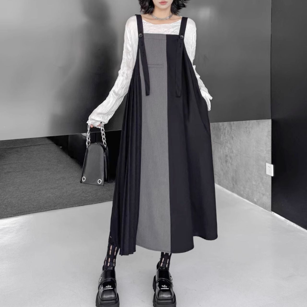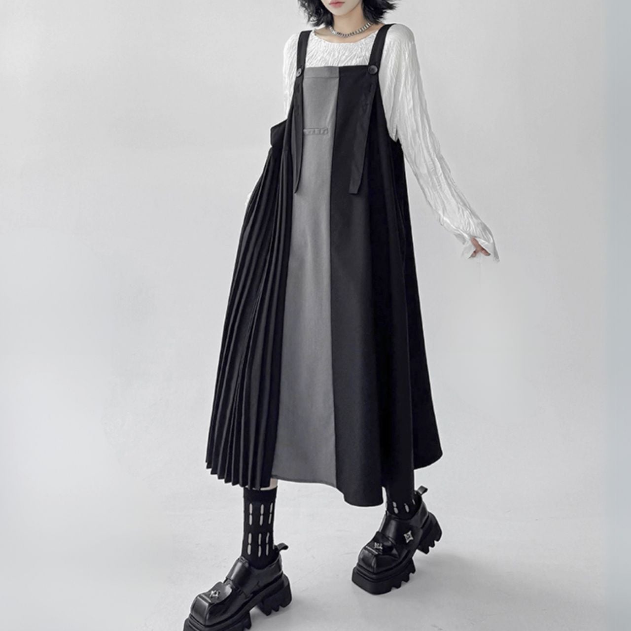 ダークでスタイリッシュなツートーンカラーが魅力のジャンパースカート。