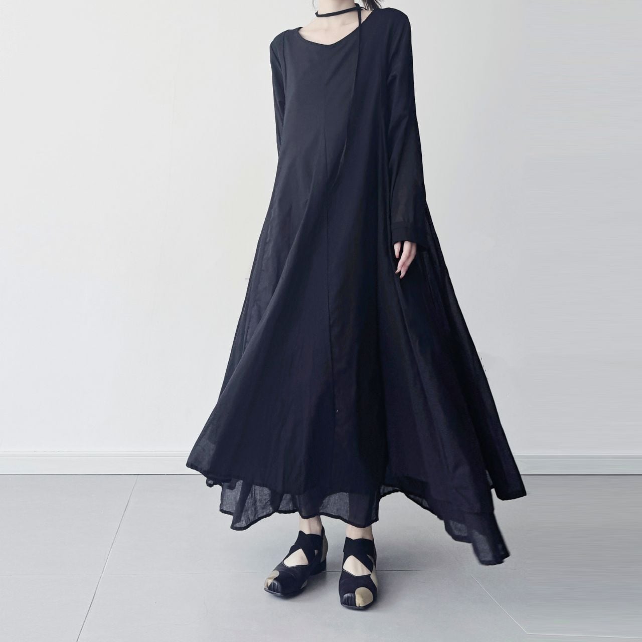 シンプルなデザインでありながらも、存在感抜群のロングドレス。