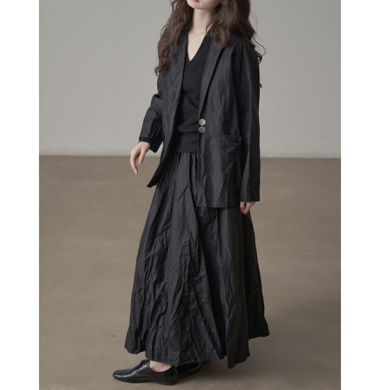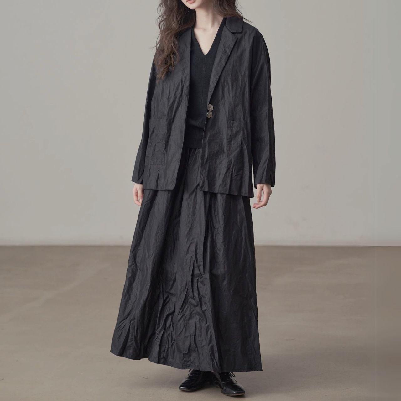 シックなカラーが魅力の、ジャケットとマキシスカートのセット。