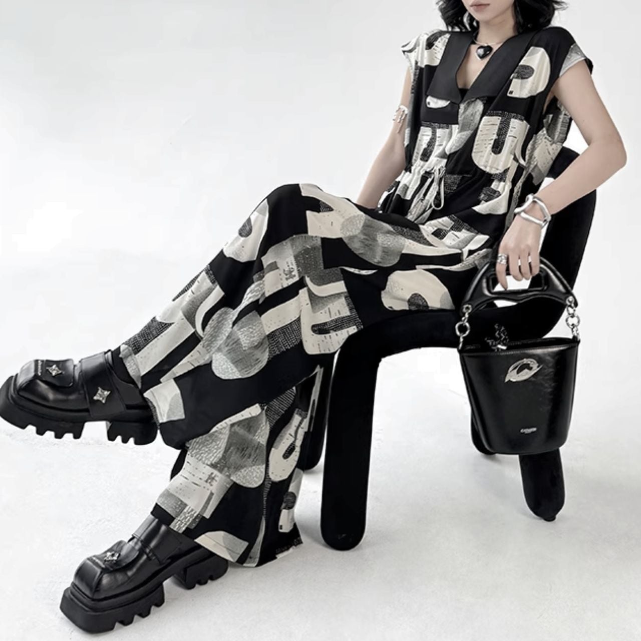 Vネックとノースリーブのデザインが、涼しげで女性らしいシルエットを演出します。