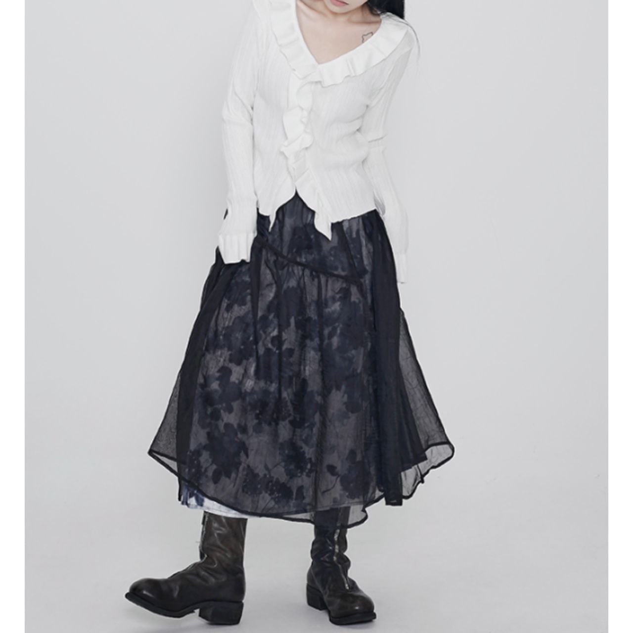シックな花柄が目を惹く、マキシ丈のティアードスカート。
