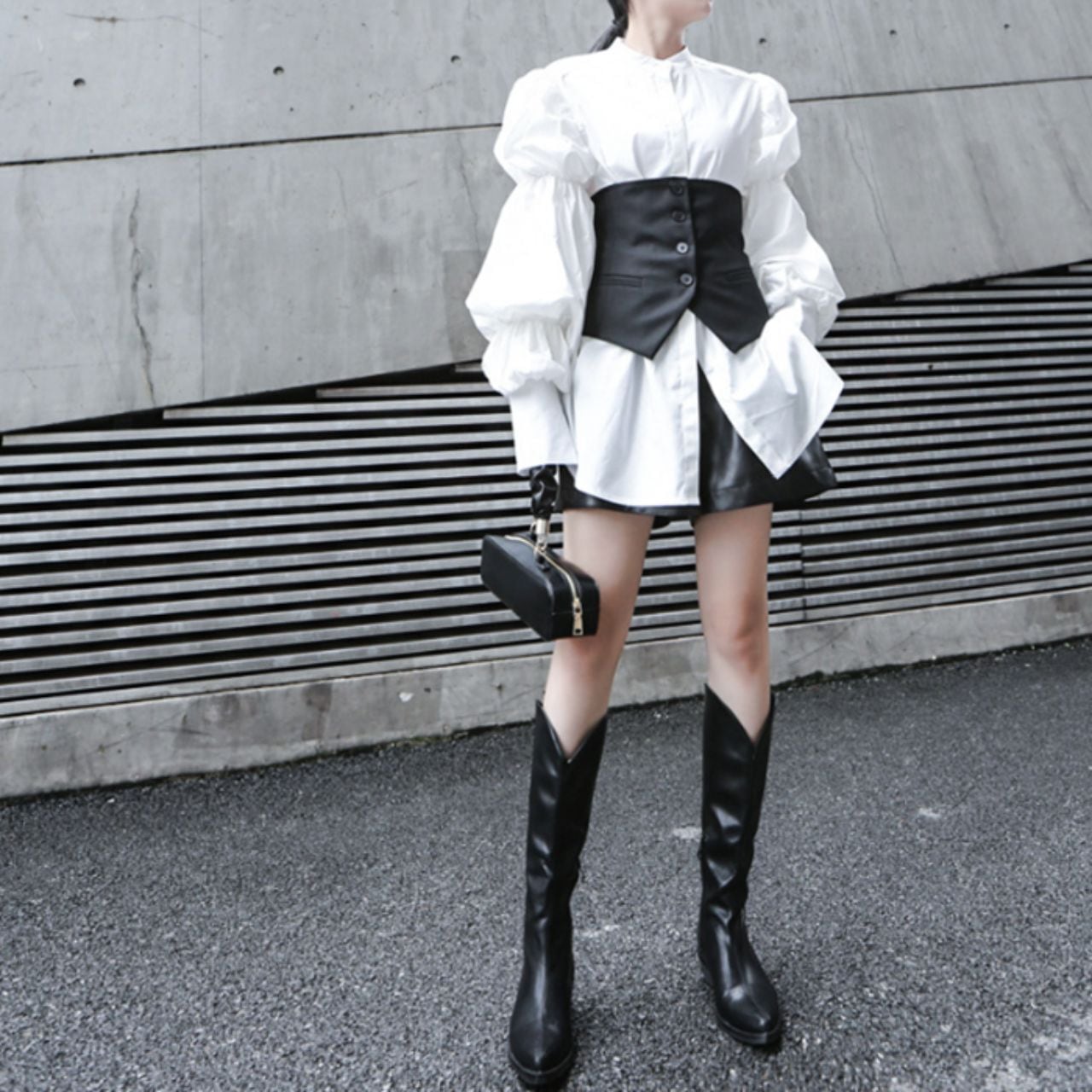 ボタンの装飾が目を惹く、個性的なコルセットベルト。