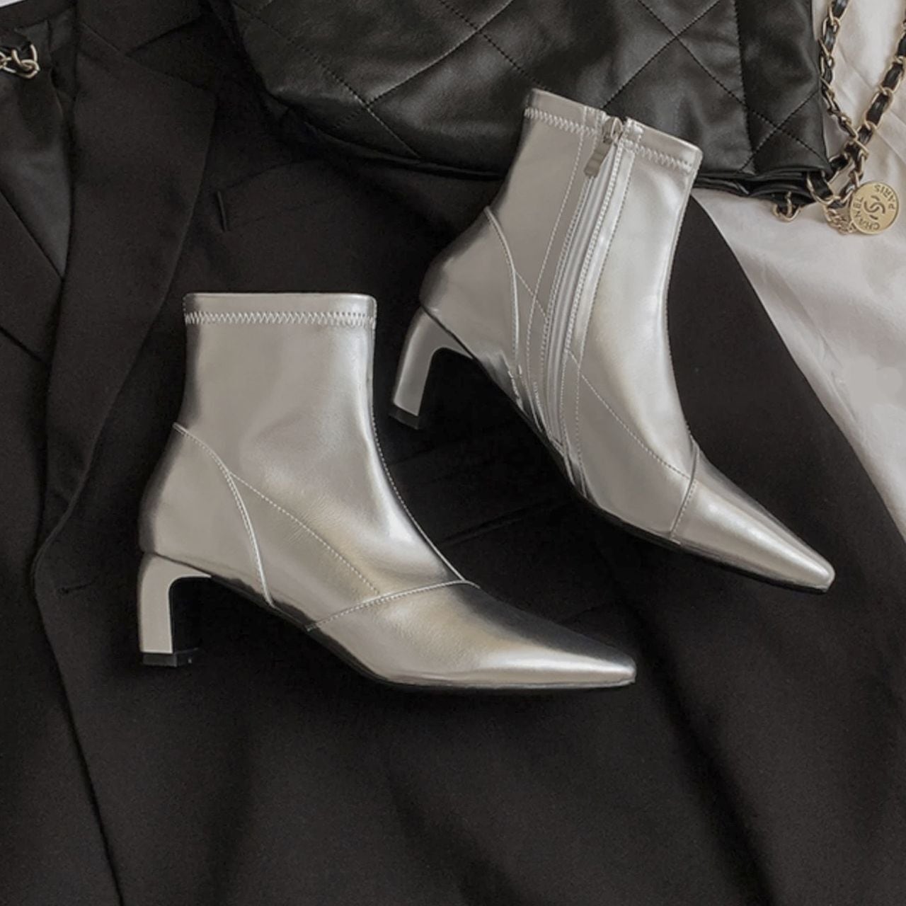 【商品詳細】 サイドジップがアクセントになったアンクルブーツは、洗練されたデザインが魅力。 上品な光沢感とシャープなシルエットで、足元を美しく彩ります。 ヒールは程よい高さで歩きやすさも抜群。 デイリーからフォーマルまで、幅広いスタイリングに合わせやすい一足です。 【Size】 35(22.5cm) 筒周り:23cm 筒高:15cm ヒール高さ:6cm 36(23.0cm) 筒周り:23cm 筒高:15cm ヒール高さ:6cm 37(23.5cm) 筒周り:23cm 筒高:15cm ヒール高さ:6cm 38(24.0cm) 筒周り:23cm 筒高:15cm ヒール高さ:6cm 39(24.5cm) 筒周り:23cm 筒高:15cm ヒール高さ:6cm 40(25.0cm) 筒周り:23cm 筒高:15cm ヒール高さ:6cm 【Color】 シルバー、ブラック 【material】 PU 【お届けについて】 こちらの商品は海外店舗より直接発送となる為、 ご入金からお届けまでに1〜4週間前後お時間をいただきます(メーカー長期休業時を除く)。 ■注意事項 ・タイミングによっては 商品在庫切れにより 注文キャンセルとさせていただく恐れもございますので、 予めご了承くださいませ。 ・こちらは輸入品となります。 日本製とは検品基準が異なる為、新品未使用品でも ごくわずかな汚れや傷がある場合もございます。 ・商品の色味は、お手持ちのスマートフォンの 画面によって実物と若干異なる場合がございます。 ・イメージ違いやサイズ等、お客様都合による交換、 返品、キャンセルは対応出来かねます。 -------------------------- 【SHOP ABOUT】【SHOP ABOUT】ご購入前にこちらをお読みください https://cravi.shopselect.net/about 【HOT ITEMはこちら】 https://shop.cravi.net/categories/6009834 【ハット・ストール等の小物はこちら】 https://shop.cravi.net/categories/5943609 【合わせ買いに!他では買えない個性的なアクセサリー】 https://shop.cravi.net/categories/6120742