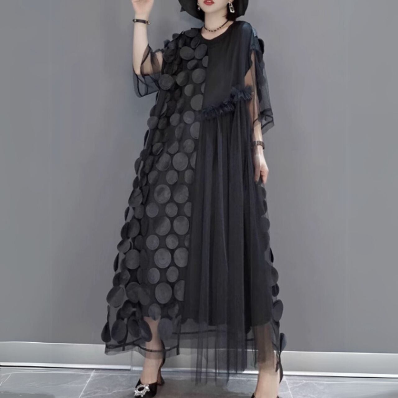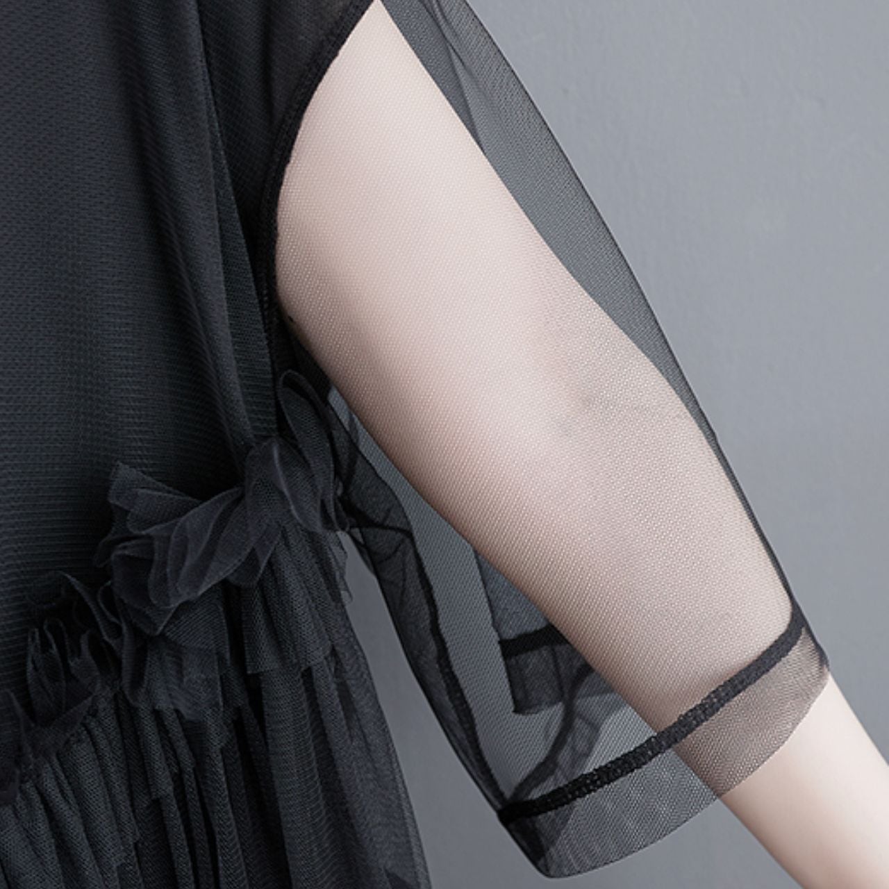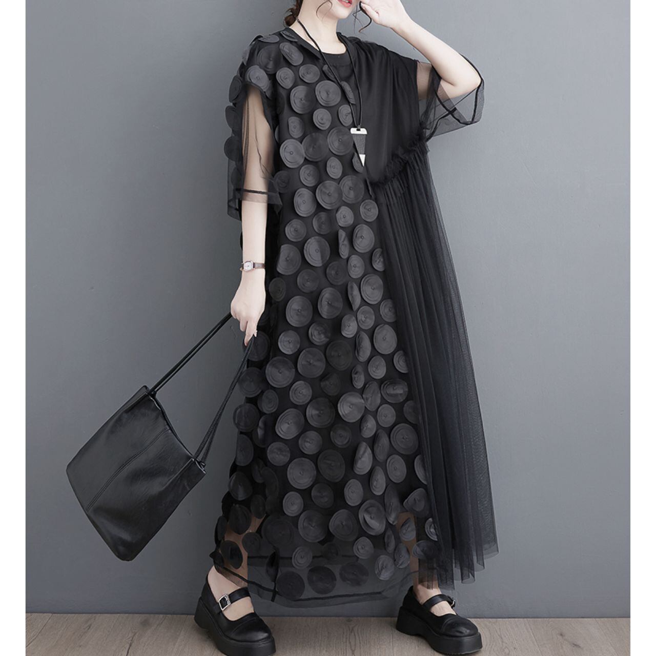 華やかな印象ながらも、シフォンの軽やかさで涼しげな着心地を実現。