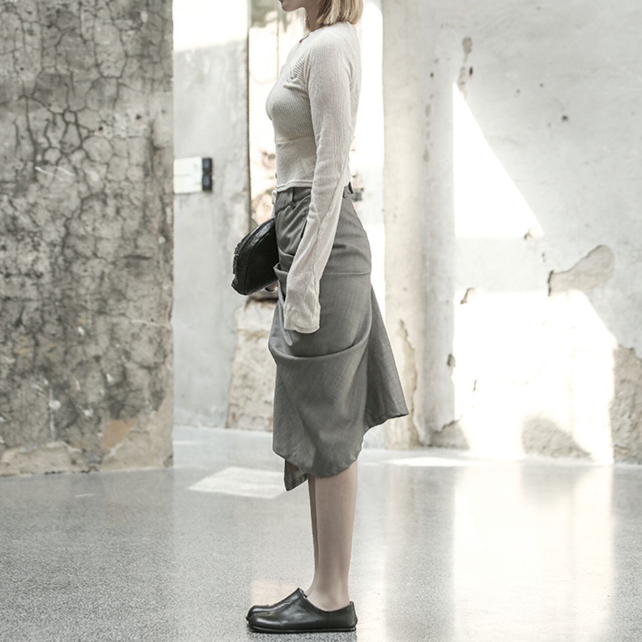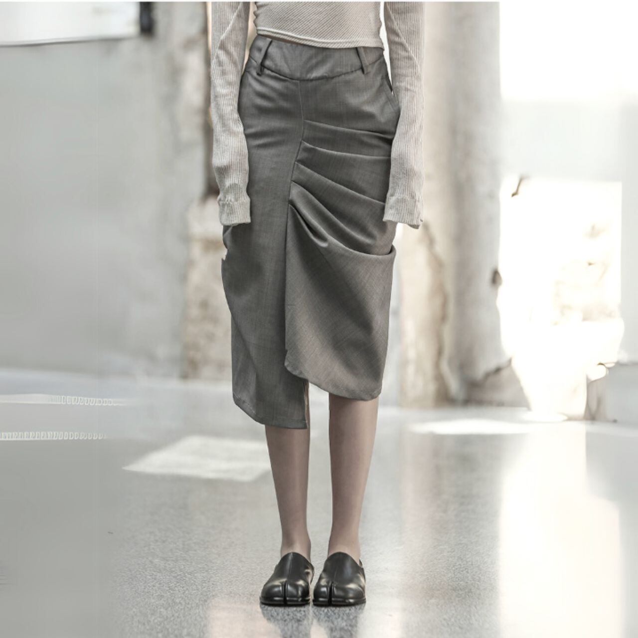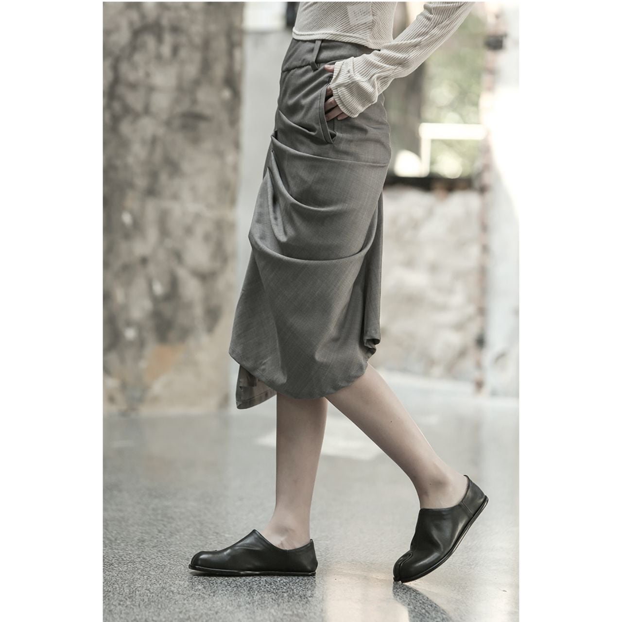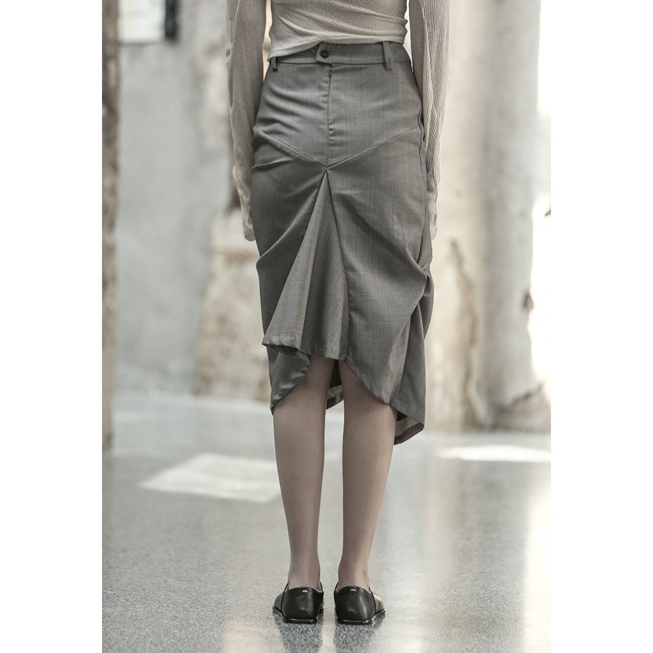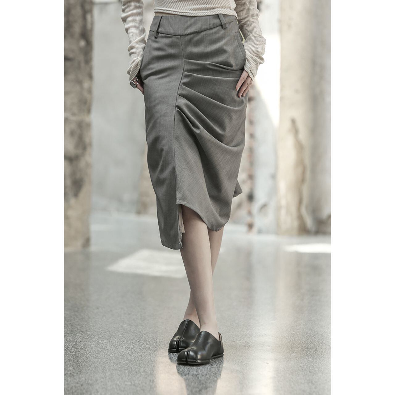 フロントのドレープが美しい落ち感を生み出し、歩くたびに優雅な動きを演出します。