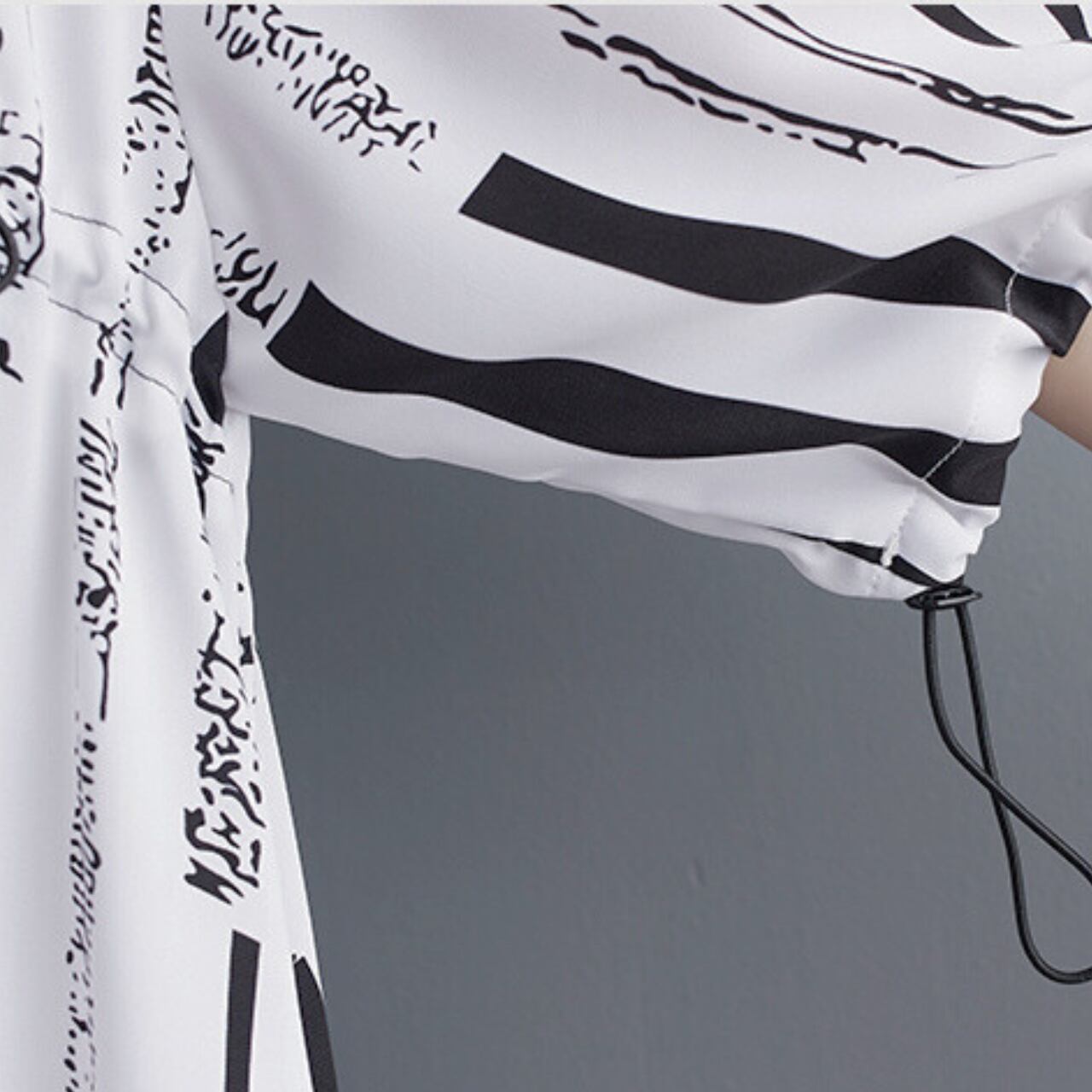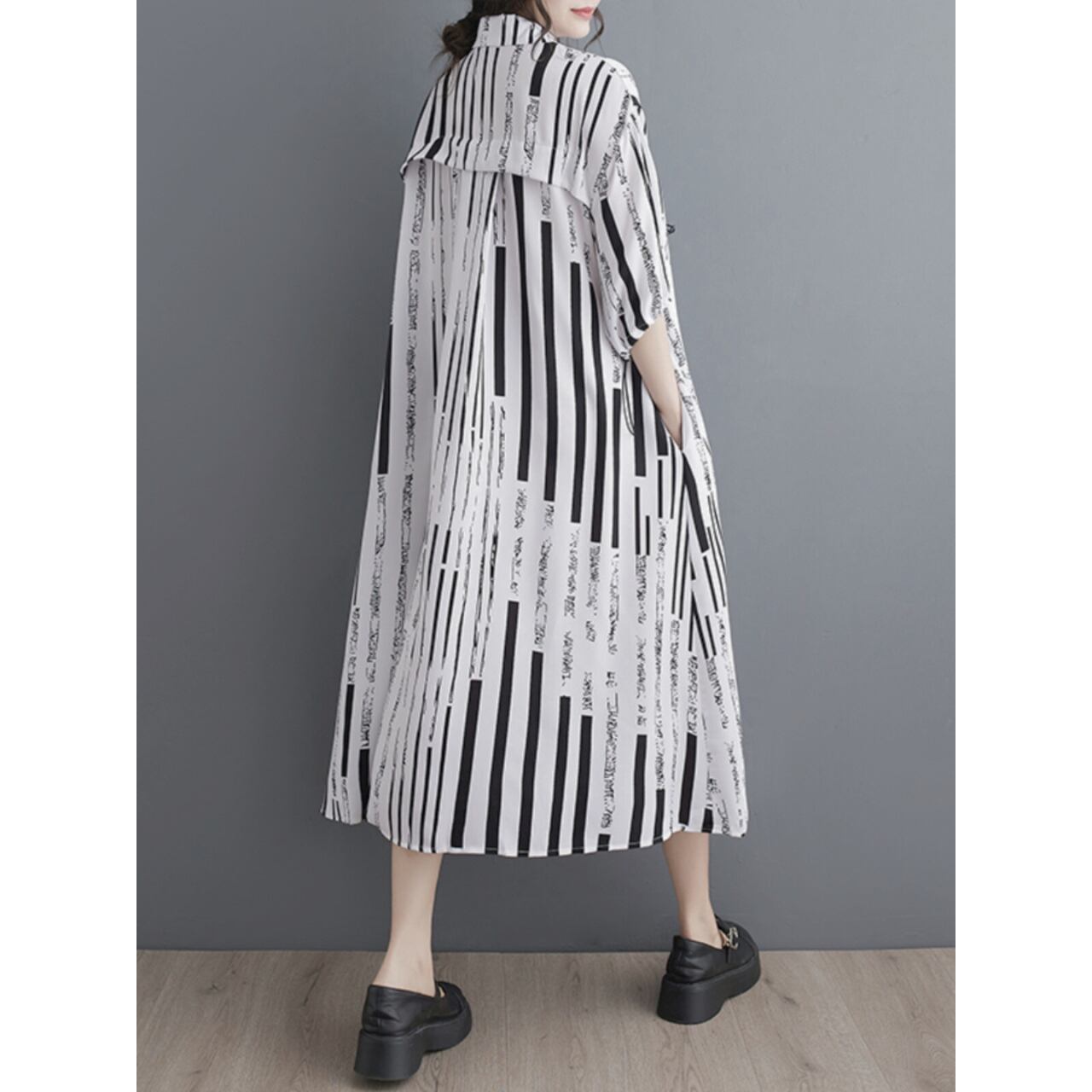 縦長のストライプ柄がスタイリッシュなロングシャツワンピース。