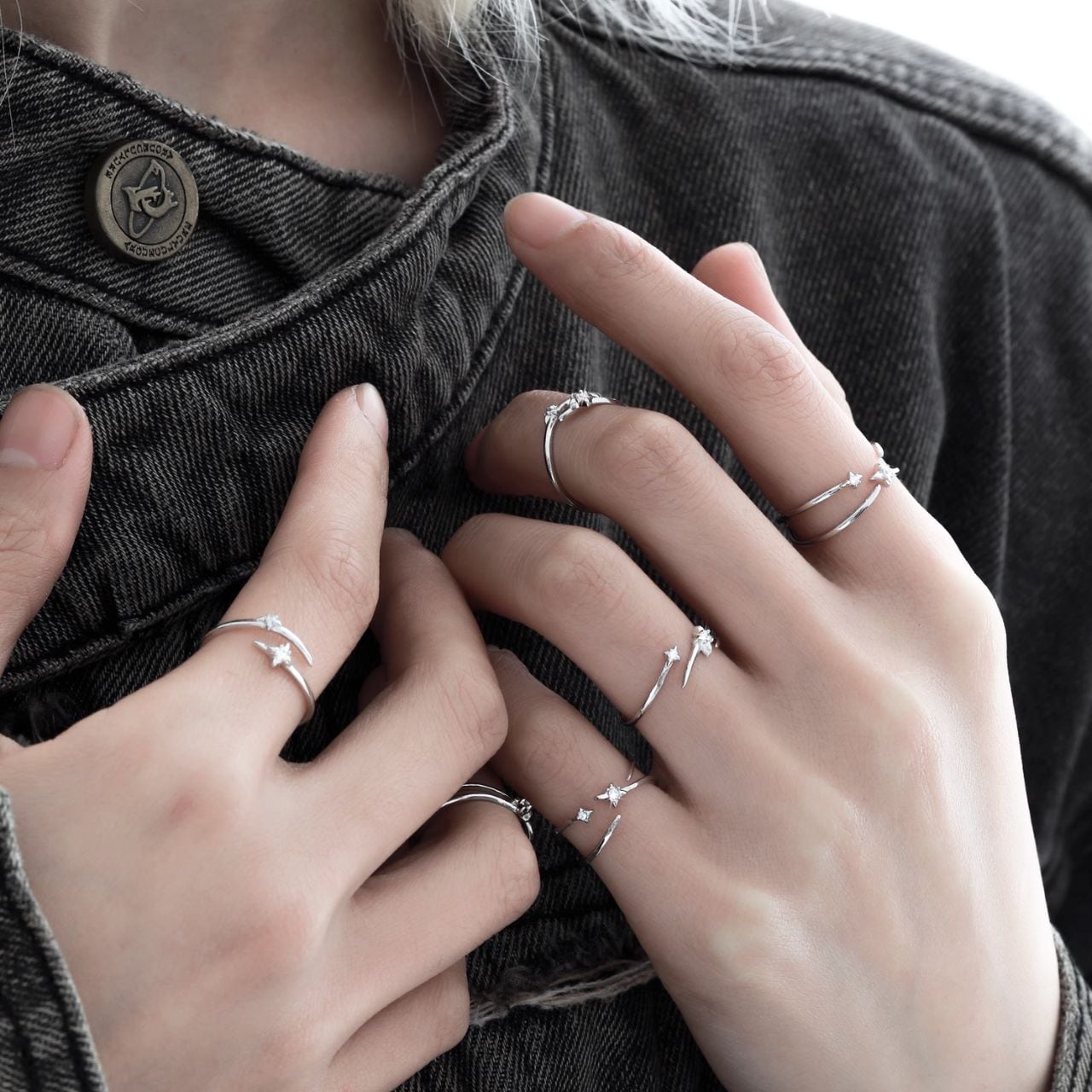人差し指用とピンキーリングとして使える3本セットで、オープンデザインのため、指のサイズに柔軟に対応できます。