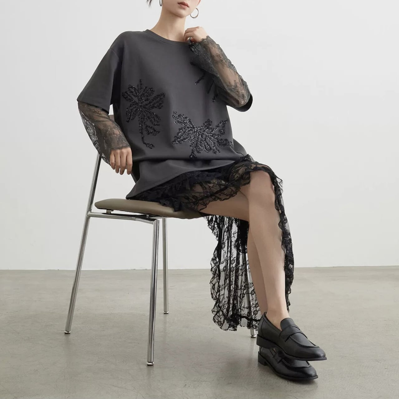 【商品詳細】 立体的なボタニカル刺繍を同色のスパンコールで仕上げた、洗練されたTシャツ。 ミニマルな中にエッジを効かせたディテールが映え、スタイリングにコンテンポラリーなアクセントを添えます。 単品でもレイヤードでも映える、モードスタイルにフィットする1着。 【Size】 S 肩幅:30cm 胸囲:98cm 着丈:64cm 袖丈:21cm M 肩幅:31cm 胸囲:102cm 着丈:65cm 袖丈:22cm L 肩幅:32cm 胸囲:106cm 着丈:66cm 袖丈:23cm XL 肩幅:33cm 胸囲:110cm 着丈:67cm 袖丈:24cm ※採寸方法により1〜3cmの誤差がある場合がございます ※モデル 身長166cm Mサイズ着用 【Color】 ブラック 【fabric】 ポリエステル 【お届けについて】 こちらの商品は海外店舗より直接発送となる為、 ご入金からお届けまでに1〜4週間前後お時間をいただきます(メーカー長期休業時を除く)。 ■注意事項 ・タイミングによっては 商品在庫切れにより 注文キャンセルとさせていただく恐れもございますので、 予めご了承くださいませ。 ・こちらは輸入品となります。 日本製とは検品基準が異なる為、新品未使用品でも ごくわずかな汚れや傷がある場合もございます。 ・商品の色味は、お手持ちのスマートフォンの 画面によって実物と若干異なる場合がございます。 ・イメージ違いやサイズ等、お客様都合による交換、 返品、キャンセルは対応出来かねます。 -------------------------- 【SHOP ABOUT】【SHOP ABOUT】ご購入前にこちらをお読みください https://cravi.shopselect.net/about 【HOT ITEMはこちら】 https://shop.cravi.net/categories/6009834 【ハット・ストール等の小物はこちら】 https://shop.cravi.net/categories/5943609 【合わせ買いに!他では買えない個性的なアクセサリー】 https://shop.cravi.net/categories/6120742
