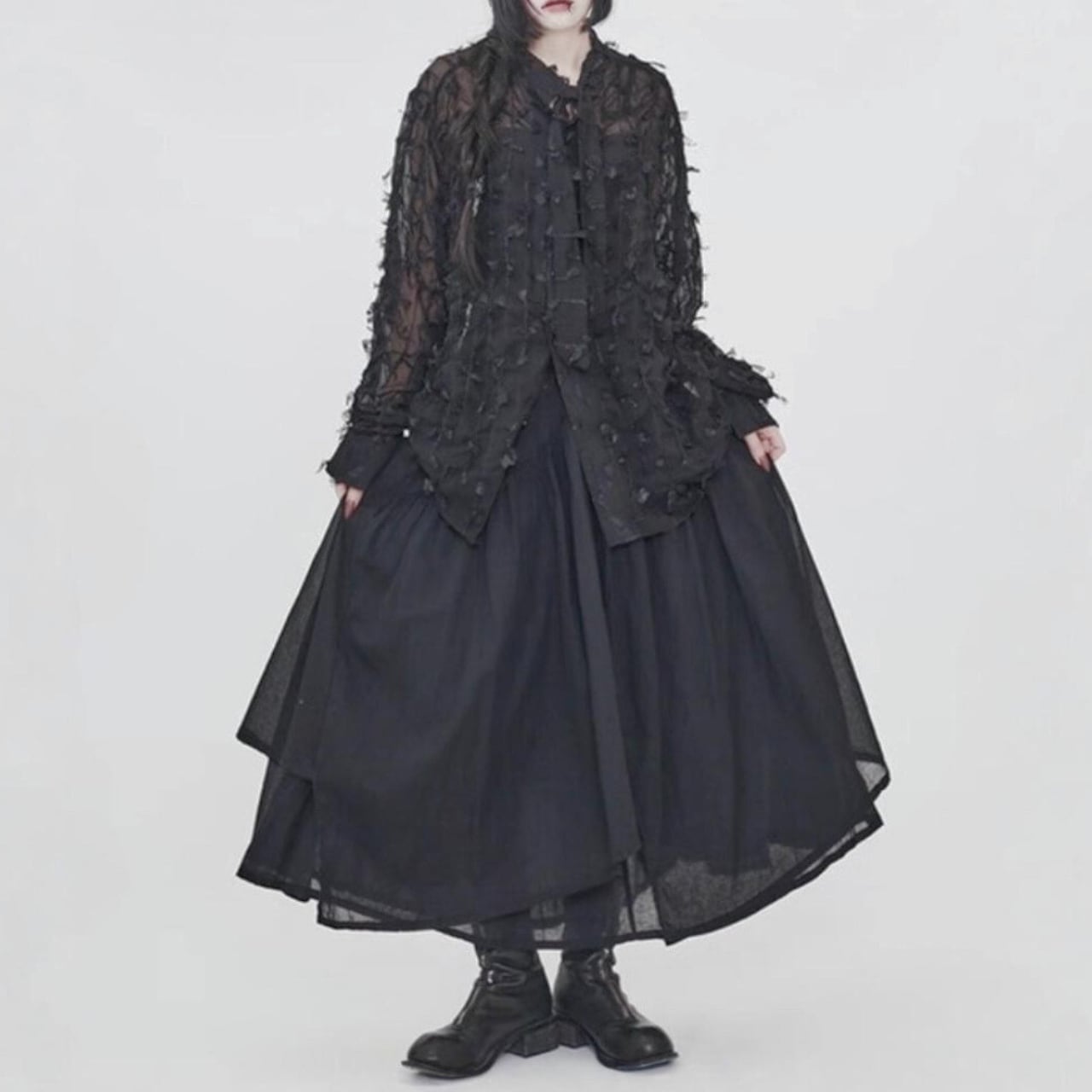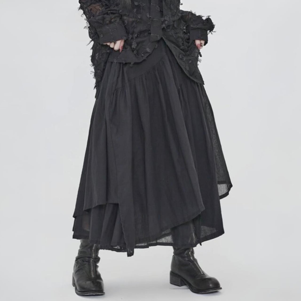 立体感のあるティアードデザインが印象的なミディ丈スカート。