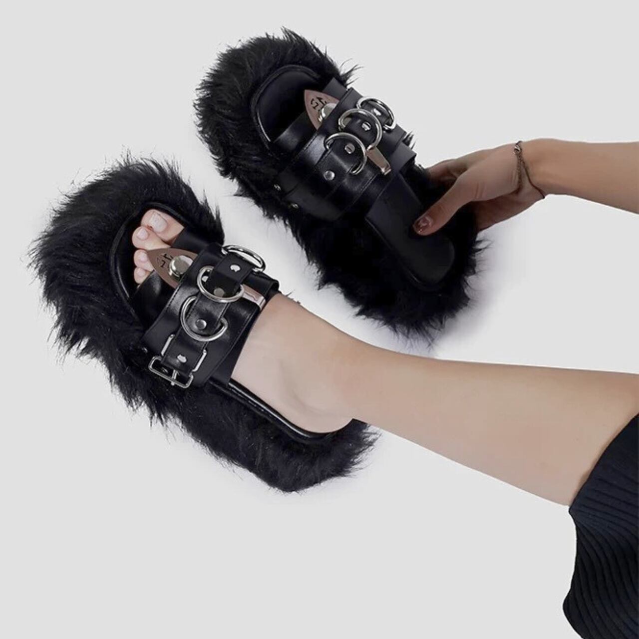 【商品詳細】 立体感のあるファーとベルトストラップを組み合わせたスライドサンダル。 足元にボリュームを出しつつ、メタルパーツでエッジを効かせたデザイン。 スクエアトゥのフォルムが全体を引き締め、モードなコーディネートにも映える一足。 【Size】 35(22.5cm) ヒール高さ:5.5cm 前底高さ:3cm 36(23.0cm) ヒール高さ:5.5cm 前底高さ:3cm 37(23.5cm) ヒール高さ:5.5cm 前底高さ:3cm 38(24.0cm) ヒール高さ:5.5cm 前底高さ:3cm 39(24.5cm) ヒール高さ:5.5cm 前底高さ:3cm 40(24.5cm) ヒール高さ:5.5cm 前底高さ:3cm 【Color】 ブラック 【material】 PU フェイクファー 【お届けについて】 こちらの商品は海外店舗より直接発送となる為、 ご入金からお届けまでに1〜4週間前後お時間をいただきます(メーカー長期休業時を除く)。 ■注意事項 ・タイミングによっては 商品在庫切れにより 注文キャンセルとさせていただく恐れもございますので、 予めご了承くださいませ。 ・こちらは輸入品となります。 日本製とは検品基準が異なる為、新品未使用品でも ごくわずかな汚れや傷がある場合もございます。 ・商品の色味は、お手持ちのスマートフォンの 画面によって実物と若干異なる場合がございます。 ・イメージ違いやサイズ等、お客様都合による交換、 返品、キャンセルは対応出来かねます。 -------------------------- 【SHOP ABOUT】【SHOP ABOUT】ご購入前にこちらをお読みください https://cravi.shopselect.net/about 【HOT ITEMはこちら】 https://shop.cravi.net/categories/6009834 【ハット・ストール等の小物はこちら】 https://shop.cravi.net/categories/5943609 【合わせ買いに!他では買えない個性的なアクセサリー】 https://shop.cravi.net/categories/6120742
