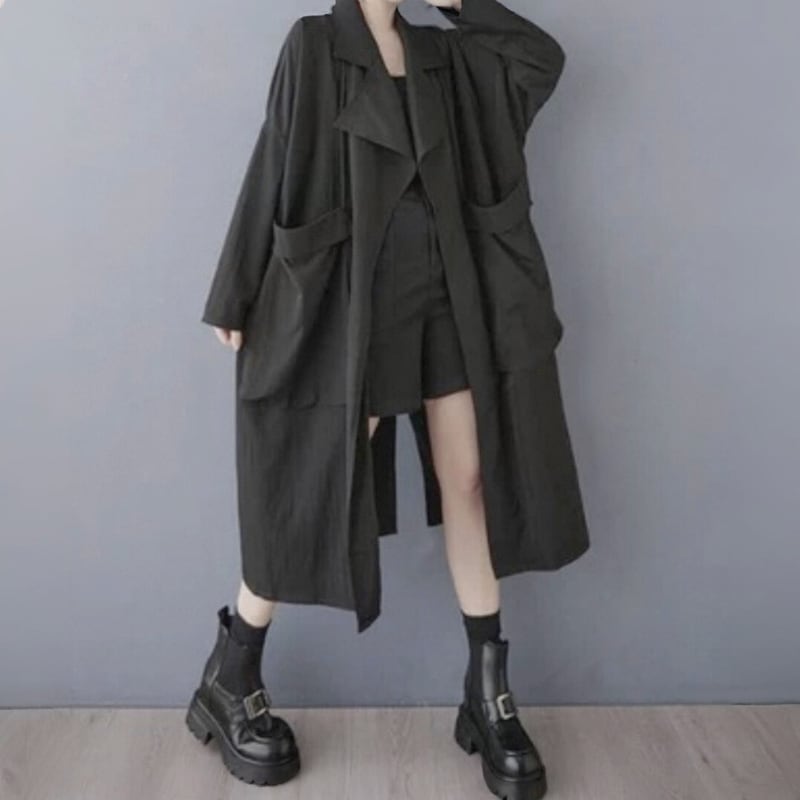 長めの丈感とワイドなシルエットが印象的なトレンチコート。