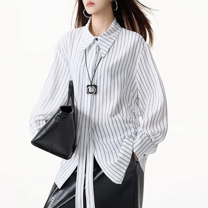 【商品詳細】 モード感のあるストライプデザインが印象的なシャツ。 ゆったりとしたオーバーサイズシルエットで、モードな印象に。 大きめの襟と長めの丈感が特徴的。 前立てには長く垂れるデザインのディテールをプラス。 一枚でスタイリングの主役になるアイテムです。 【Size】 M 肩幅:46cm 胸囲:102cm 着丈:74cm 袖丈:56cm ウエスト:84-96cm 裾まわり:128cm L 肩幅:46cm 胸囲:106cm 着丈:75cm 袖丈:56cm ウエスト:88-100cm 裾まわり:132cm XL 肩幅:46cm 胸囲:110cm 着丈:76cm 袖丈:56cm ウエスト:92-104cm 裾まわり:136cm ※採寸方法により1〜3cmの誤差がある場合がございます 【Color】 ホワイト ブラック 【fabric】 コットン、リネン 【お届けについて】 こちらの商品は海外店舗より直接発送となる為、 ご入金からお届けまでに1〜4週間前後お時間をいただきます(メーカー長期休業時を除く)。 ■注意事項 ・タイミングによっては 商品在庫切れにより 注文キャンセルとさせていただく恐れもございますので、 予めご了承くださいませ。 ・こちらは輸入品となります。 日本製とは検品基準が異なる為、新品未使用品でも ごくわずかな汚れや傷がある場合もございます。 ・商品の色味は、お手持ちのスマートフォンの 画面によって実物と若干異なる場合がございます。 ・イメージ違いやサイズ等、お客様都合による交換、 返品、キャンセルは対応出来かねます。 -------------------------- 【SHOP ABOUT】【SHOP ABOUT】ご購入前にこちらをお読みください https://cravi.shopselect.net/about 【HOT ITEMはこちら】 https://shop.cravi.net/categories/6009834 【ハット・ストール等の小物はこちら】 https://shop.cravi.net/categories/5943609 【合わせ買いに!他では買えない個性的なアクセサリー】 https://shop.cravi.net/categories/6120742