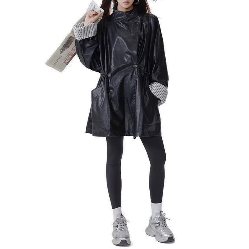 しなやかなレザー調素材を使用したオーバーサイズコート。