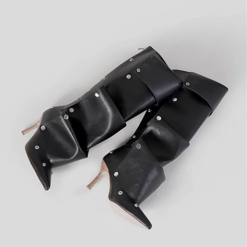 【商品詳細】 レイヤード風に重ねたデザインが印象的なロングブーツ。 艶のあるブラックにスタッズをあしらい、立体的で存在感のあるフォルムを描きます。 ポインテッドトゥとスリムなヒールが、モードな雰囲気を引き立てる一足です。 【Size】 35(22.5cm) 36(23.0cm) 37(23.5cm) 38(24.0cm) 39(24.5cm) 40(25.0cm) 共通サイズ ソール上:36cm ヒール高さ:8cm 【Color】 ブラック ホワイト 【fabric】 PU(合成皮革) 【お届けについて】 こちらの商品は海外店舗より直接発送となる為、 ご入金からお届けまでに1〜4週間前後お時間をいただきます(メーカー長期休業時を除く)。 ◼️注意事項 ・タイミングによっては 商品在庫切れにより 注文キャンセルとさせていただく恐れもございますので、 予めご了承くださいませ。 ・こちらは輸入品となります。 日本製とは検品基準が異なる為、新品未使用品でも ごくわずかな汚れや傷がある場合もございます。 ・商品の色味は、お手持ちのスマートフォンの 画面によって実物と若干異なる場合がございます。 ・イメージ違いやサイズ等、お客様都合による交換、 返品、キャンセルは対応出来かねます。 ———————————— 【SHOP ABOUT】ご購入前にこちらをお読みください https://cravi.shopselect.net/about 【HOT ITEMはこちら】 https://shop.cravi.net/categories/6009834 【ハット・ストール等の小物はこちら】 https://shop.cravi.net/categories/5943609 【合わせ買いに!他では買えない個性的なアクセサリー】 https://shop.cravi.net/categories/6120742