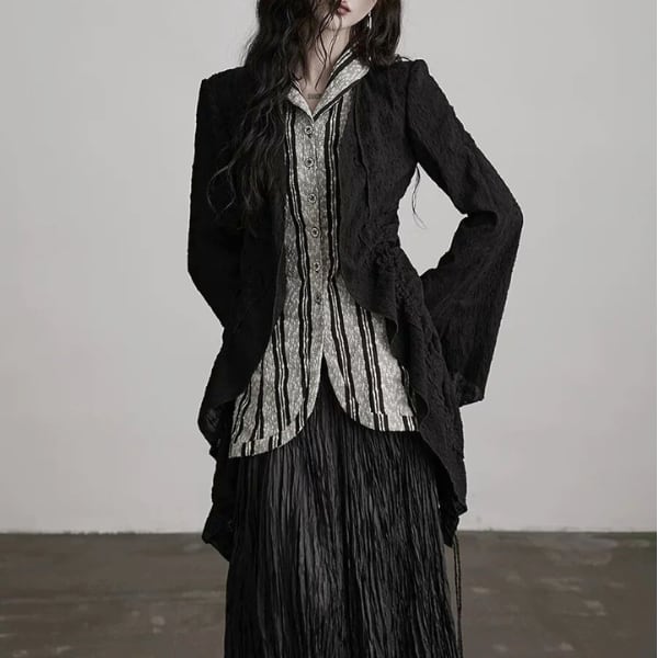 アシンメトリーなシルエットが動くたびに表情を変え、モードな雰囲気を引き立てます。