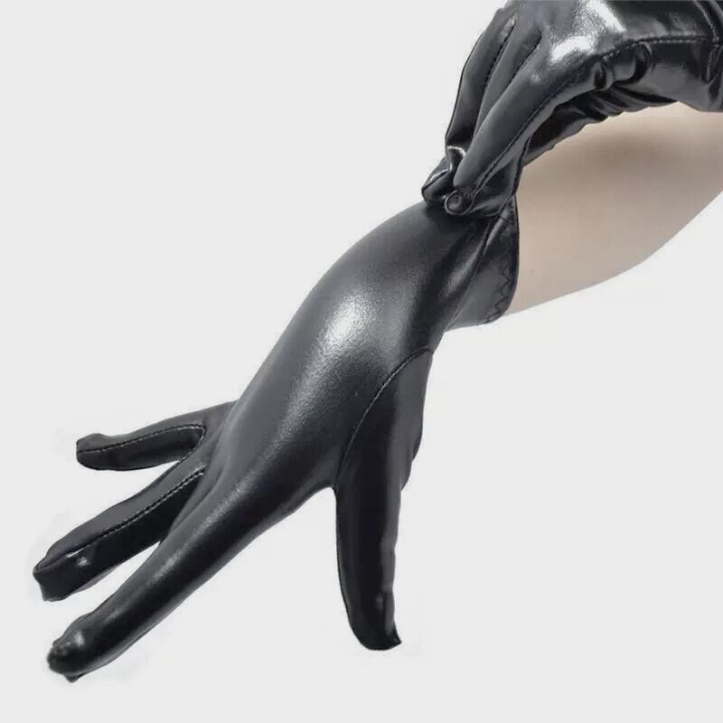 艶のあるフェイクレザーを使用した、洗練された印象のグローブです。