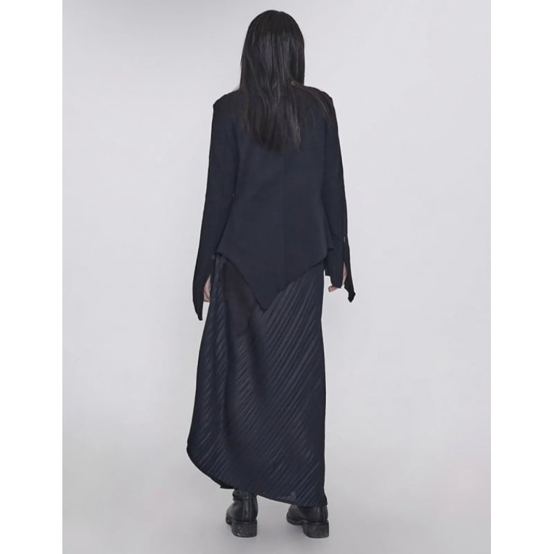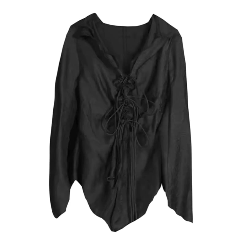 フロントのレースアップが印象的なアシンメトリーデザインのシャツ。