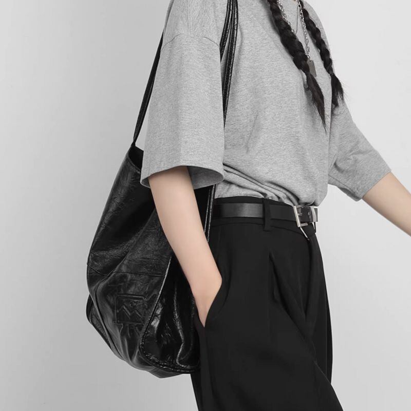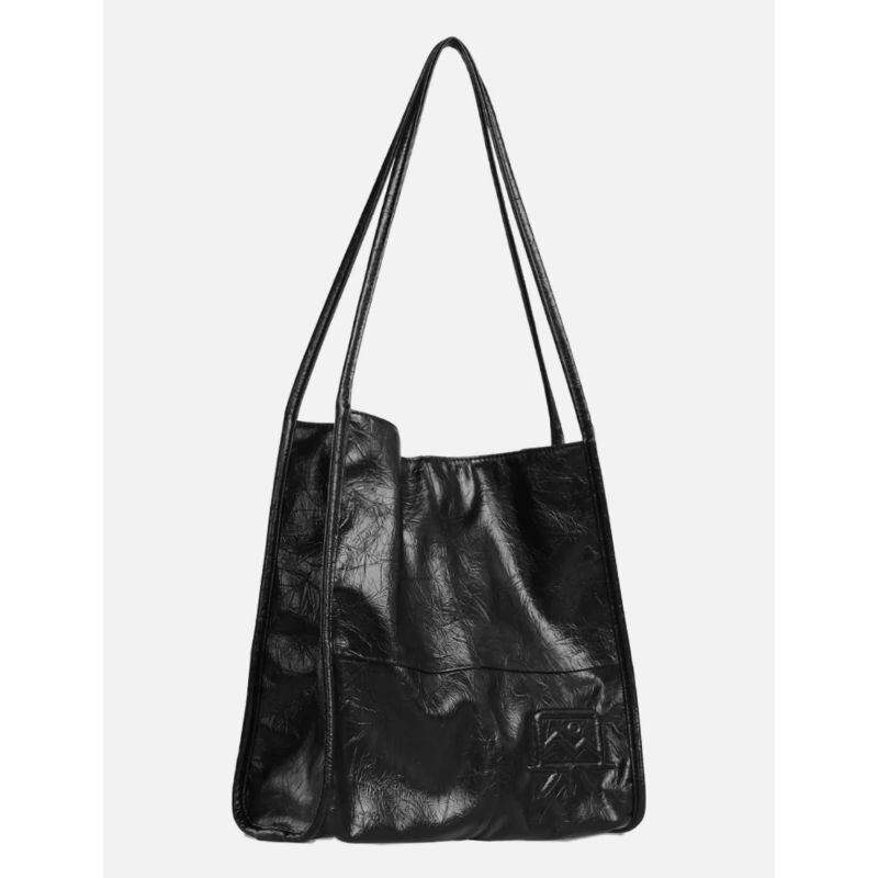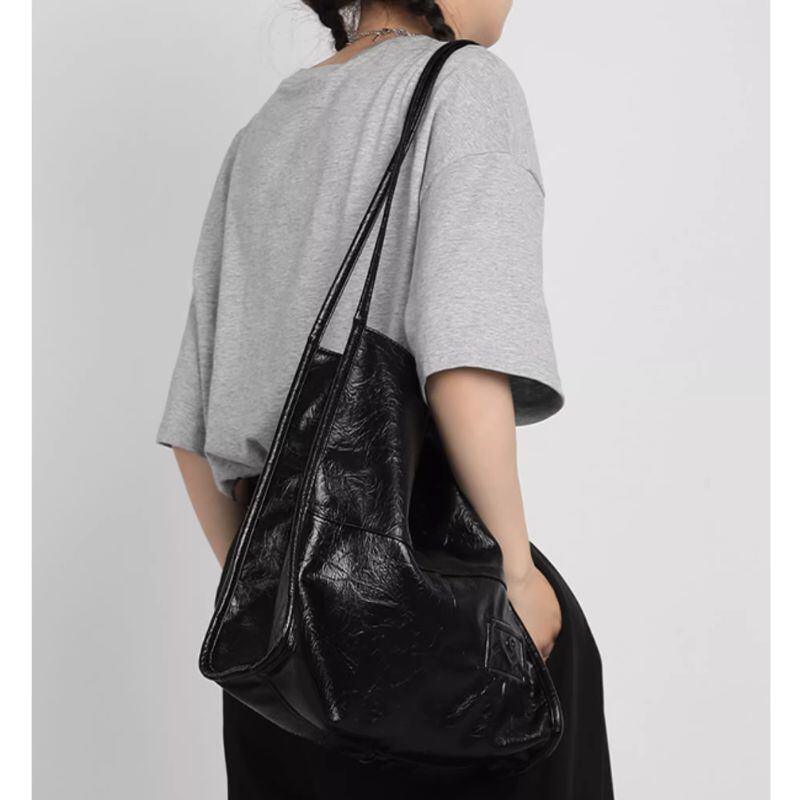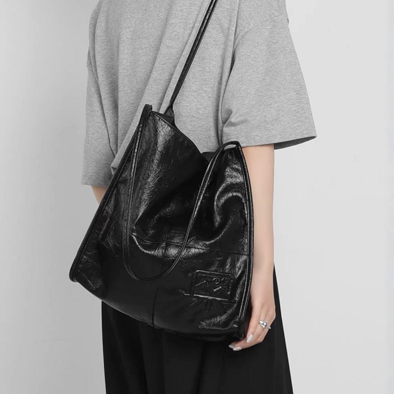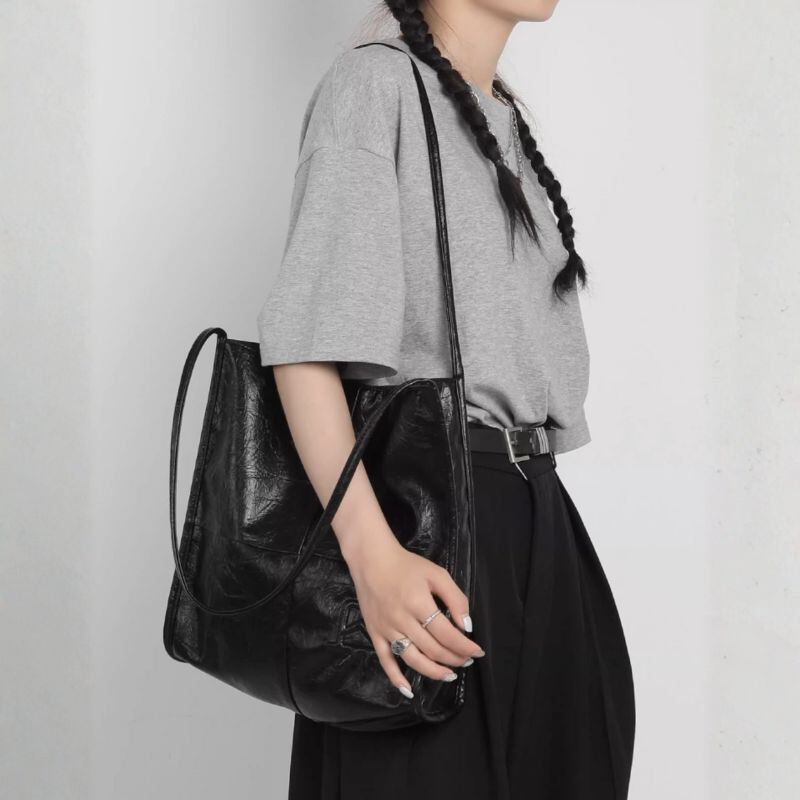 無駄のないデザインが魅力のフェイクレザートートバッグ。