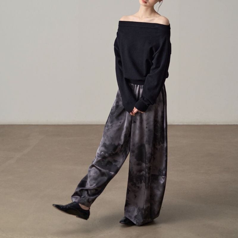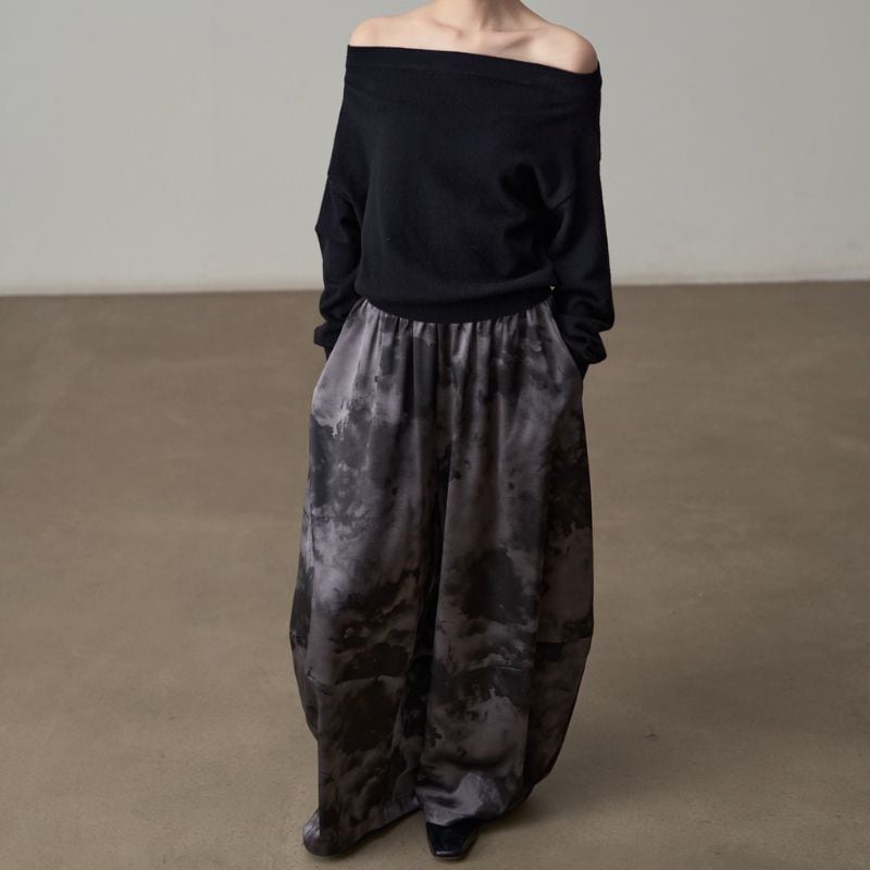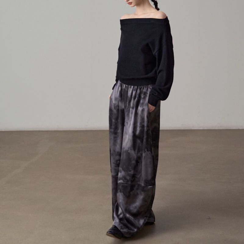 タイダイのように滲む、美しい色のグラデーションが目を惹くワイドパンツ。