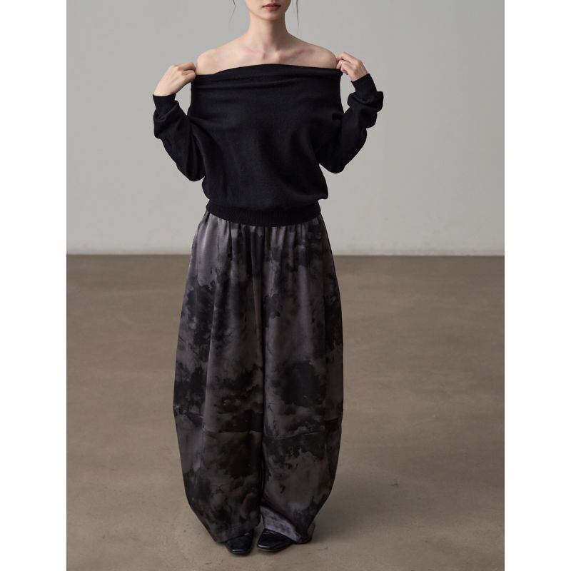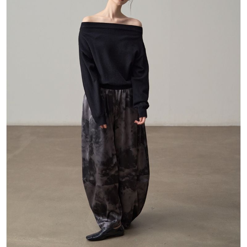 ウエストは総ゴムでリラックス感がありながらも、モードな存在感を放つ一枚。