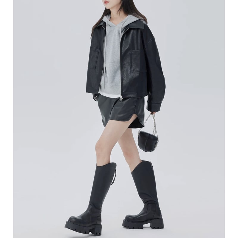 大きめのカラーと直線的なジップが特徴のジャケット。
