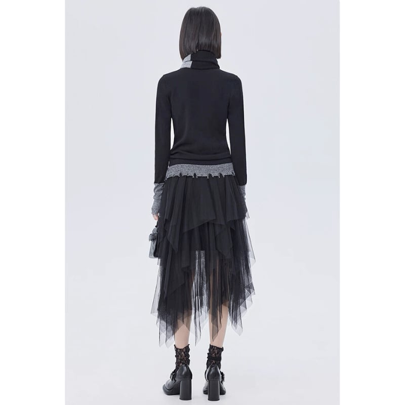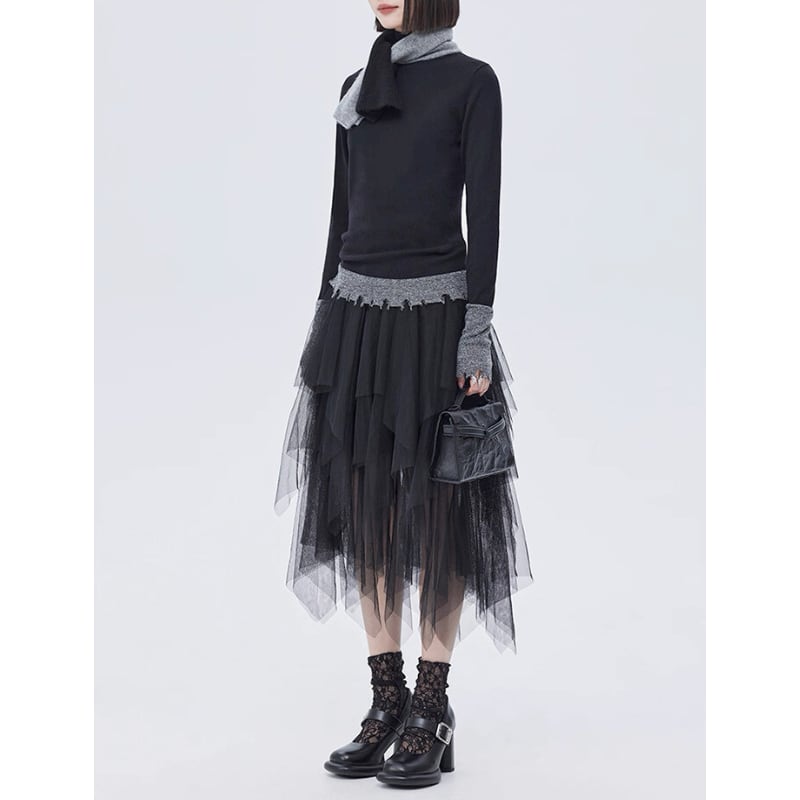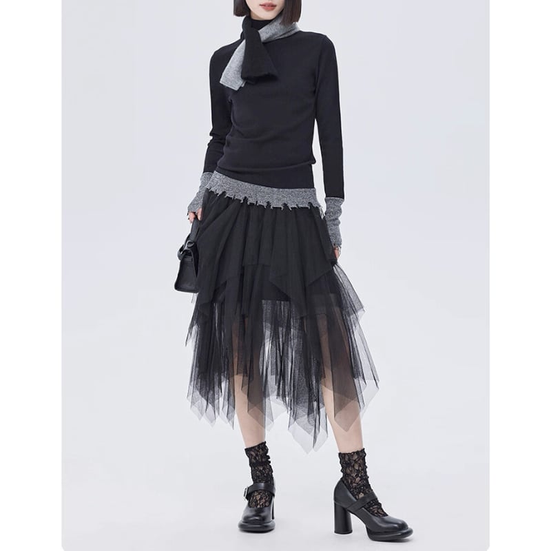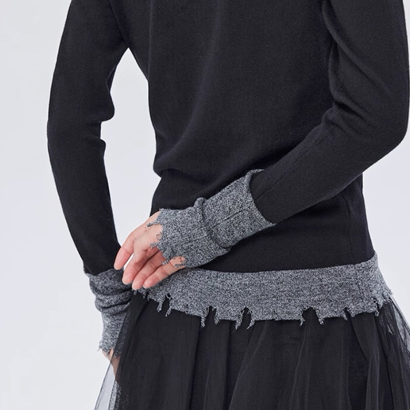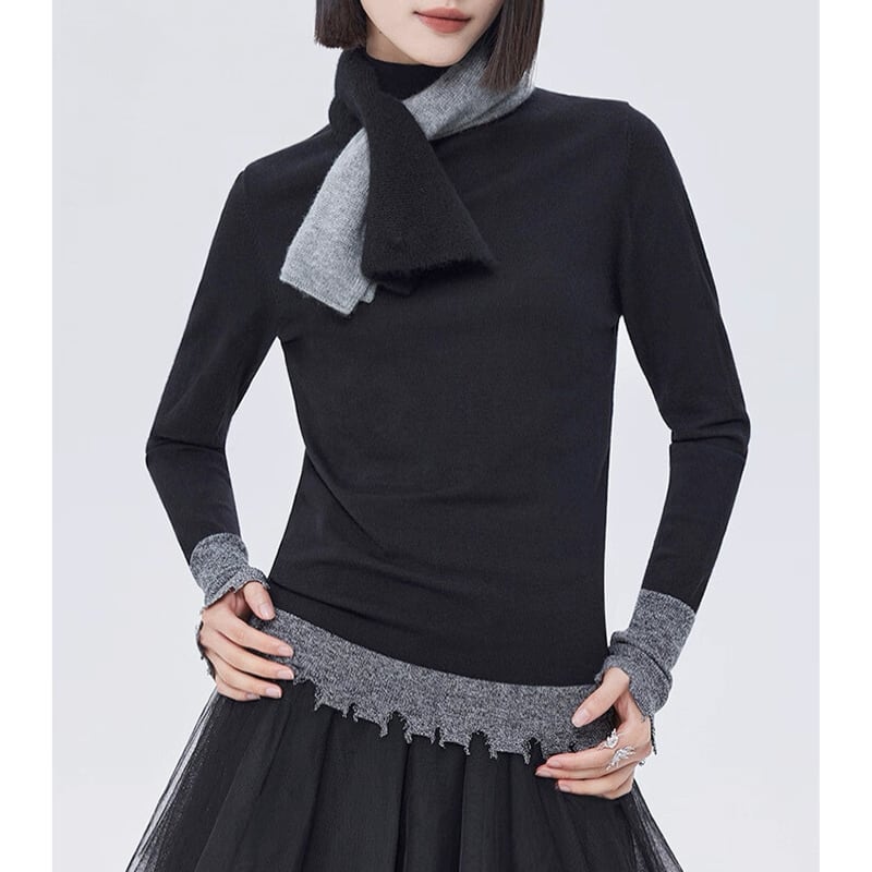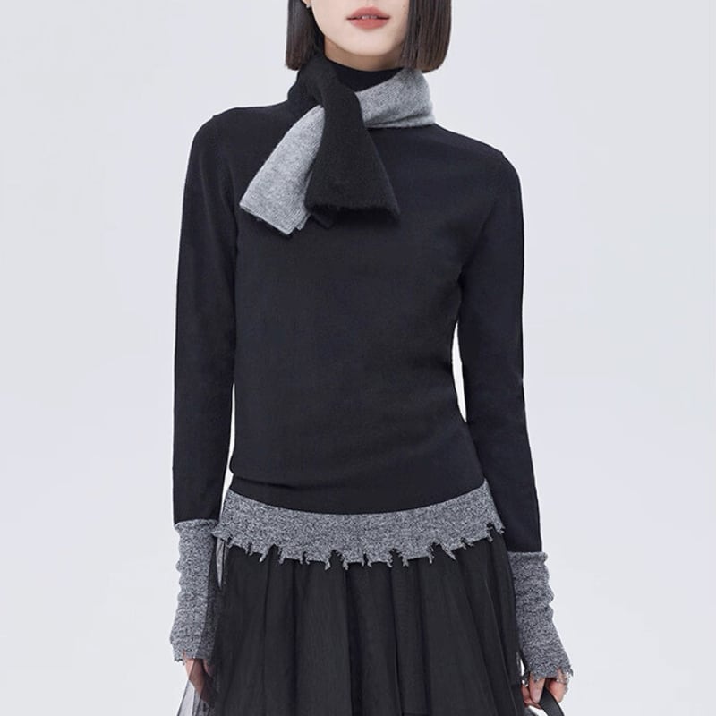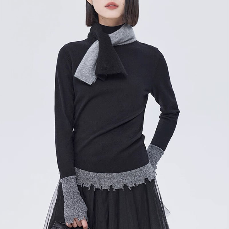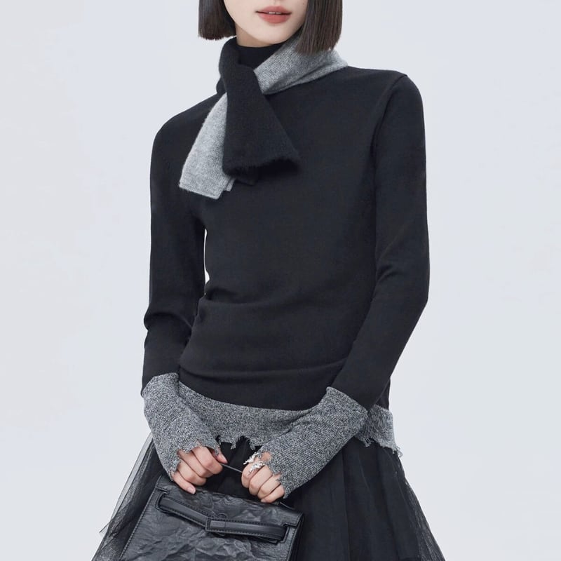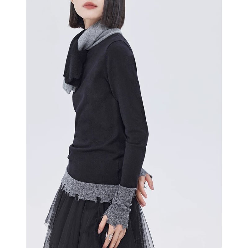 配色で切り替えた袖口と裾が印象的なニットトップス。