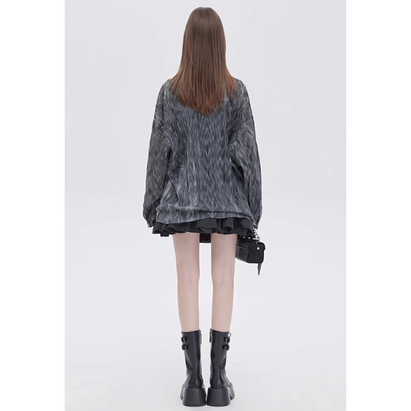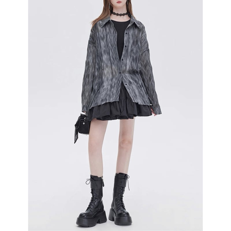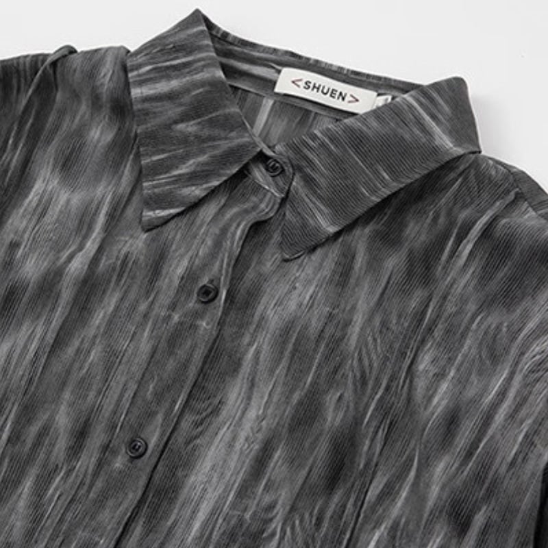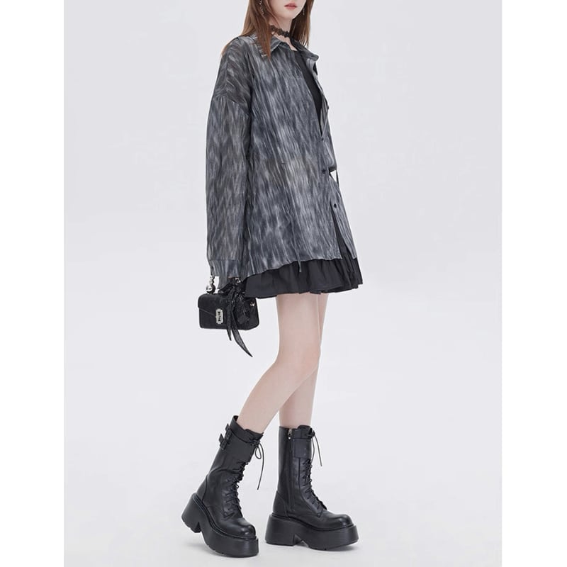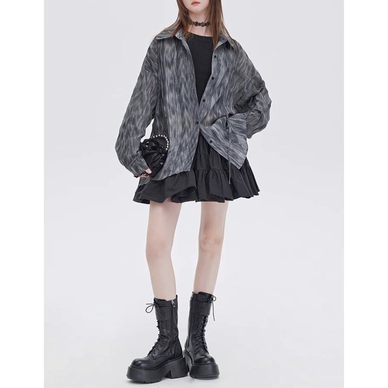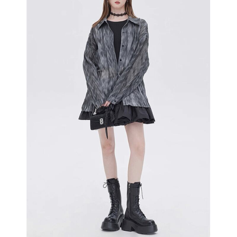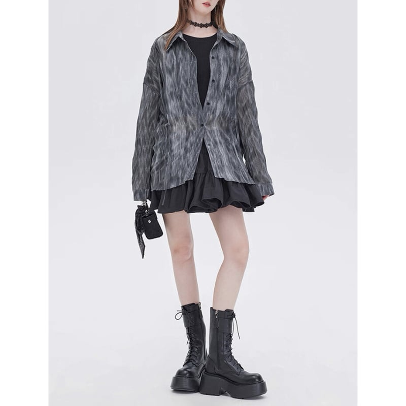 流れるようなマーブル調の柄が印象的なシアーシャツ。
