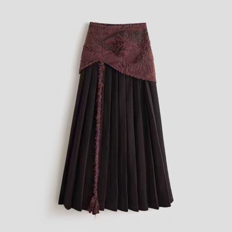 アシンメトリーな重なりが特徴のプリーツスカート。