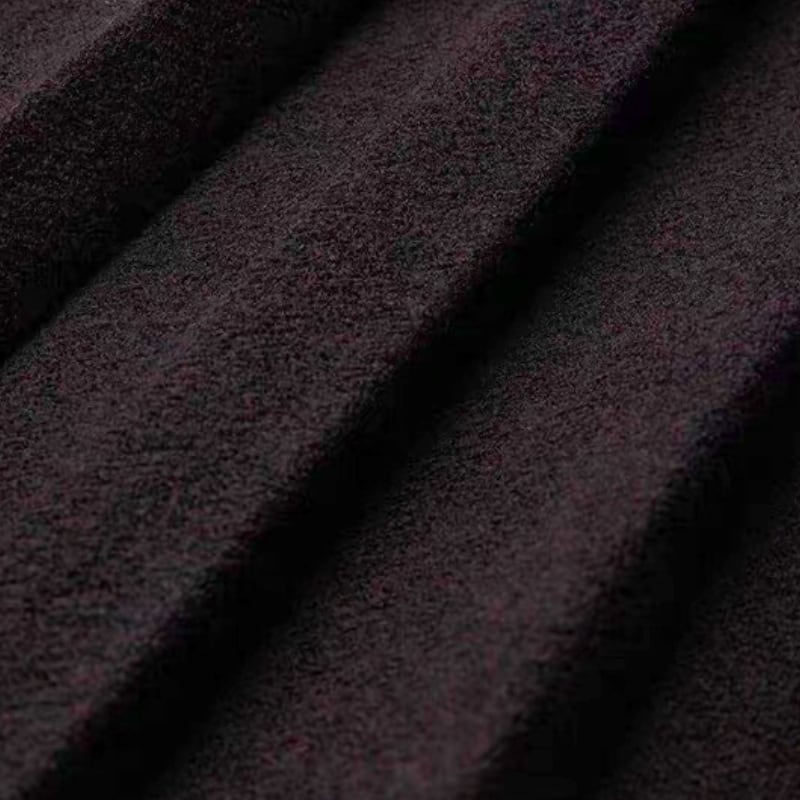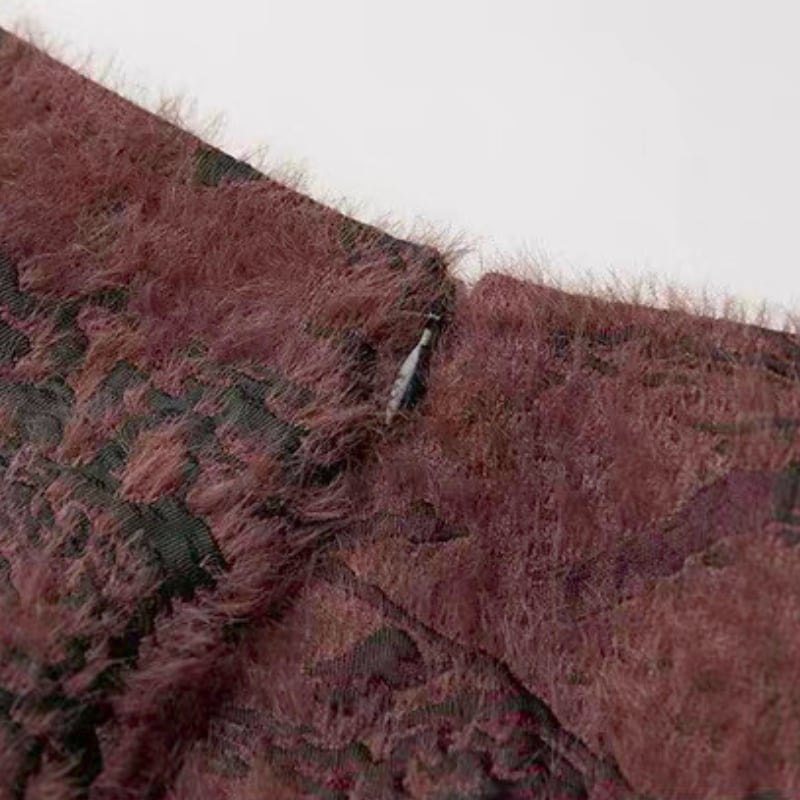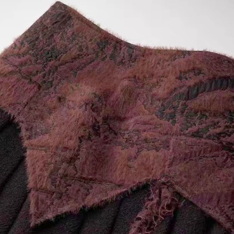 ウエストから斜めに重ねた、起毛感のあるレイヤード風のディテールが目を引きます。
