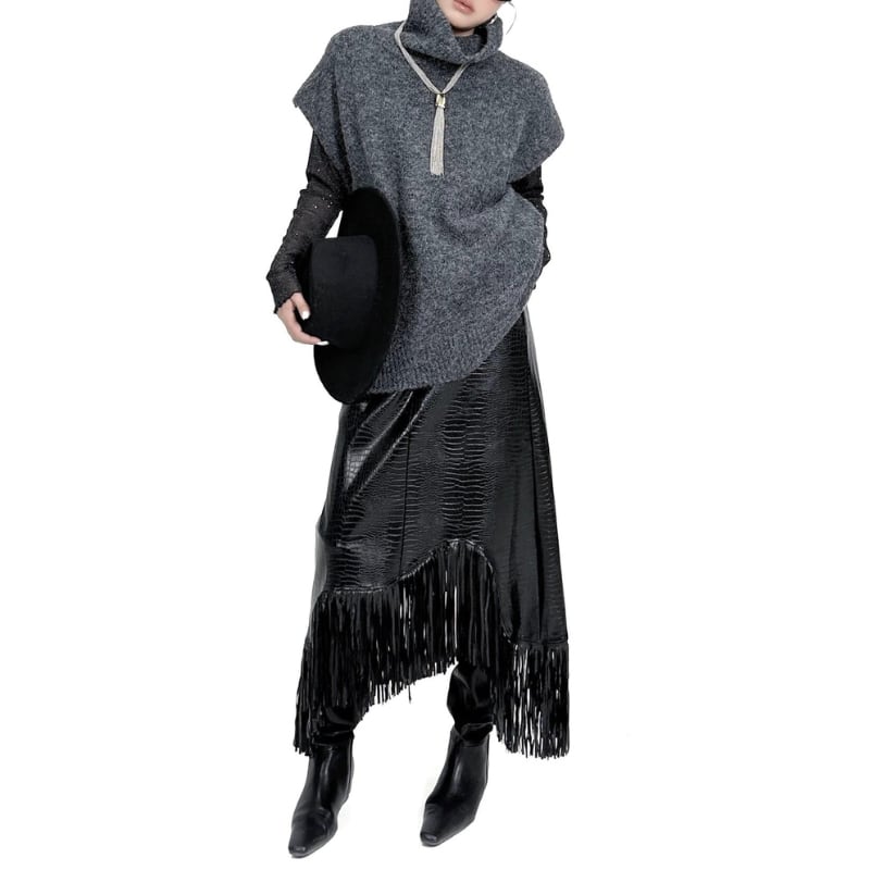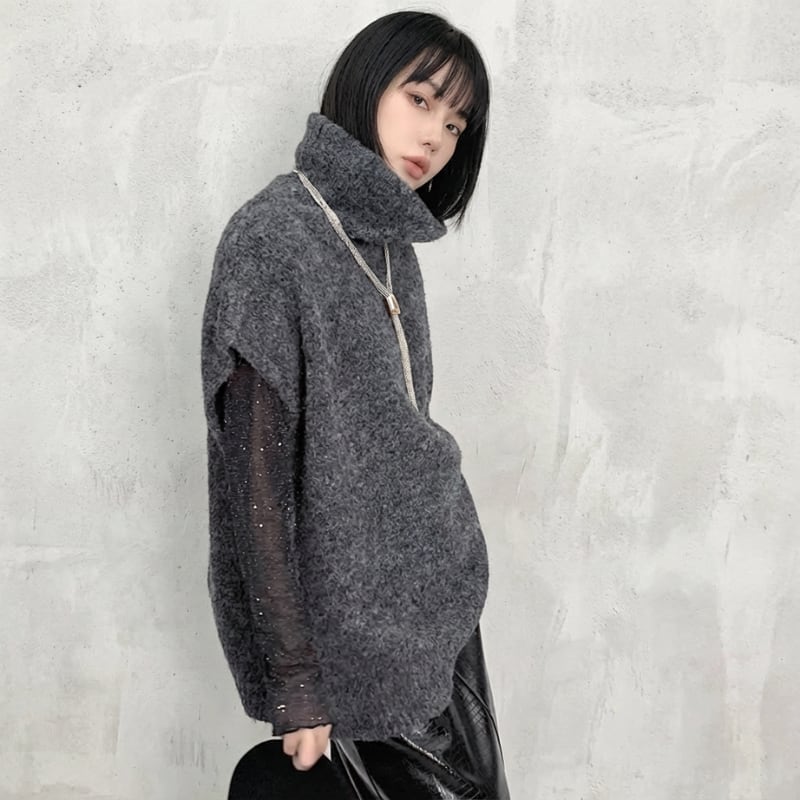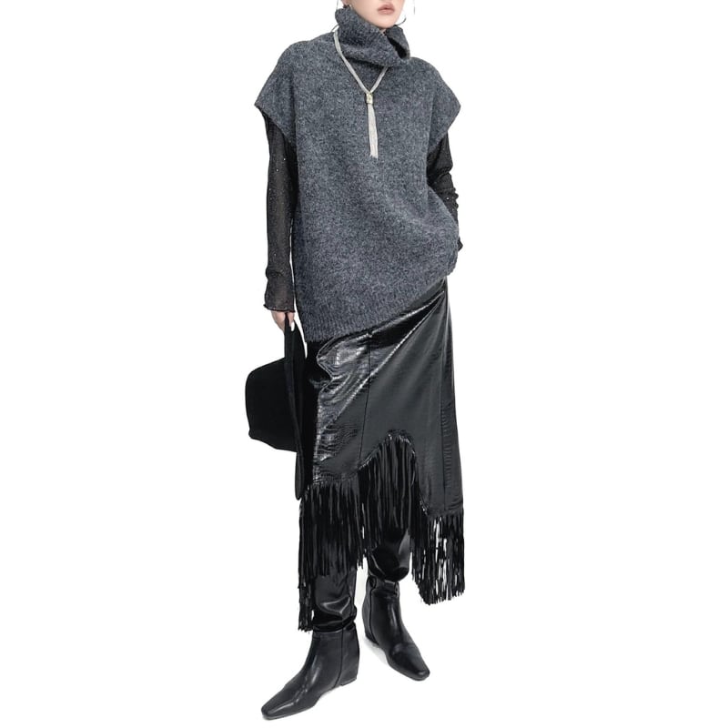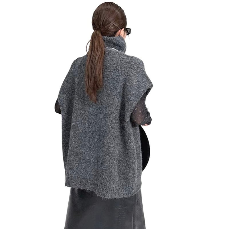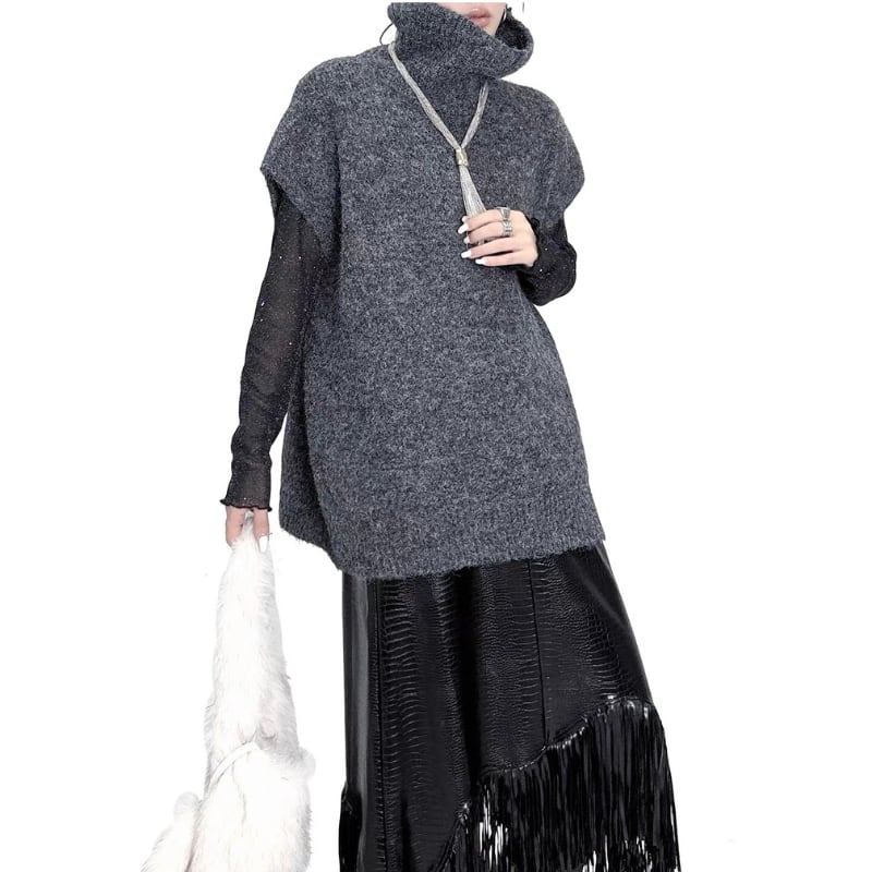 ハイネック仕様で、首元に自然なボリュームを持たせたニットベスト。