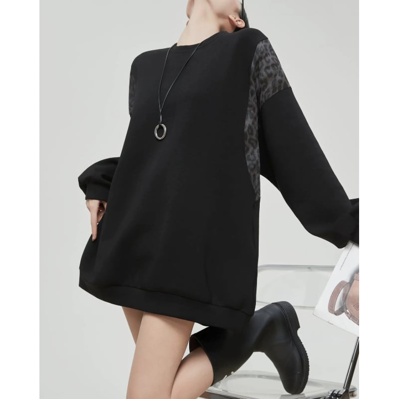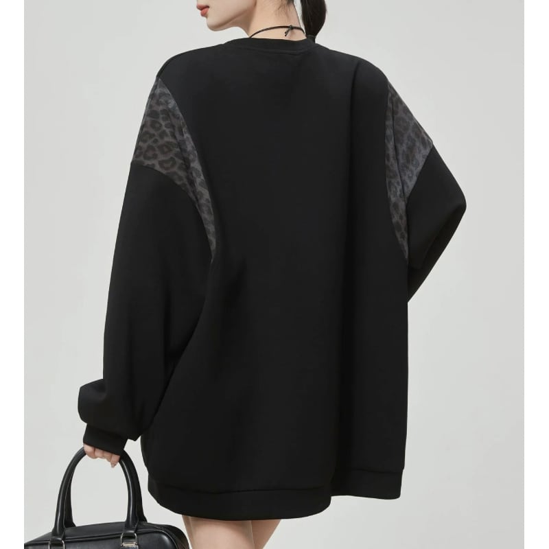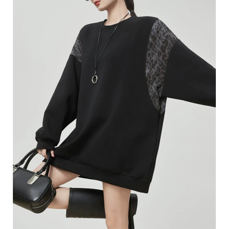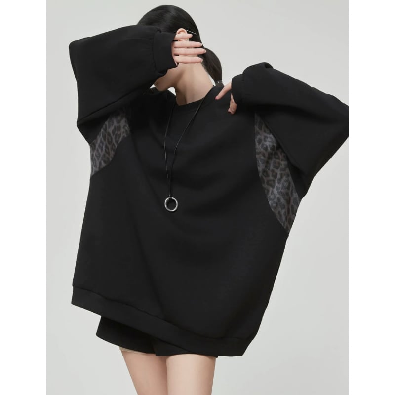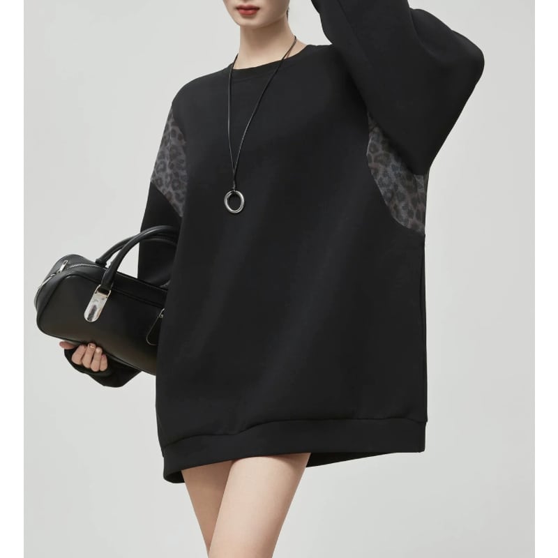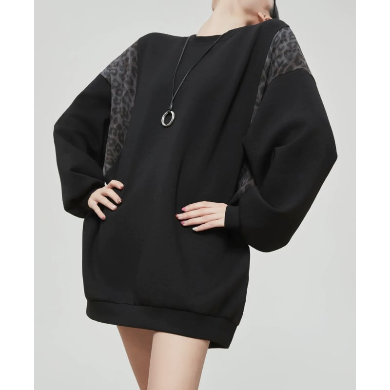 ゆったりとしたシルエットに、レオパード柄を組み合わせたスウェット。