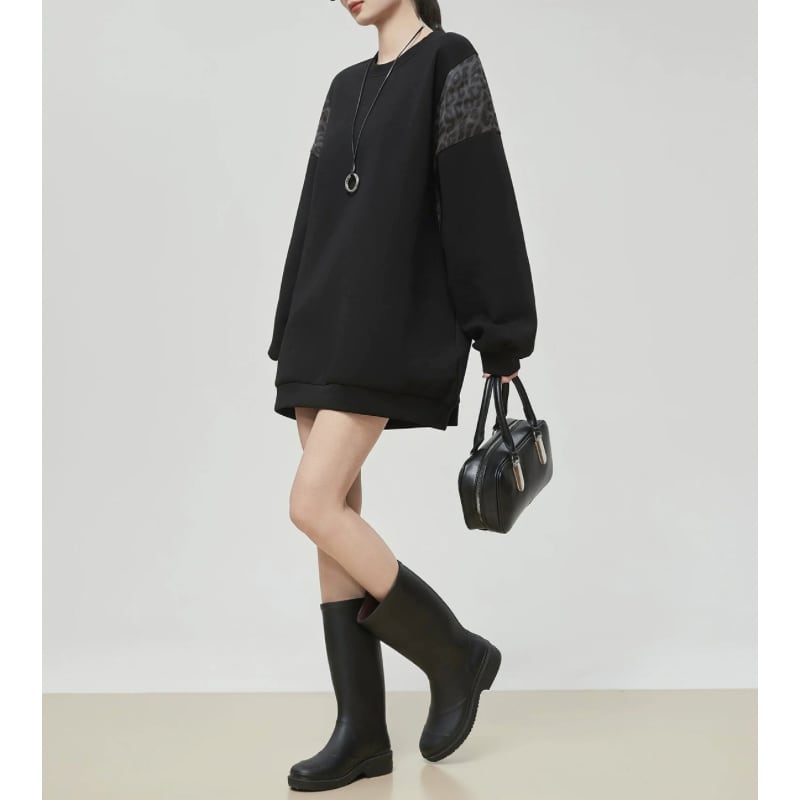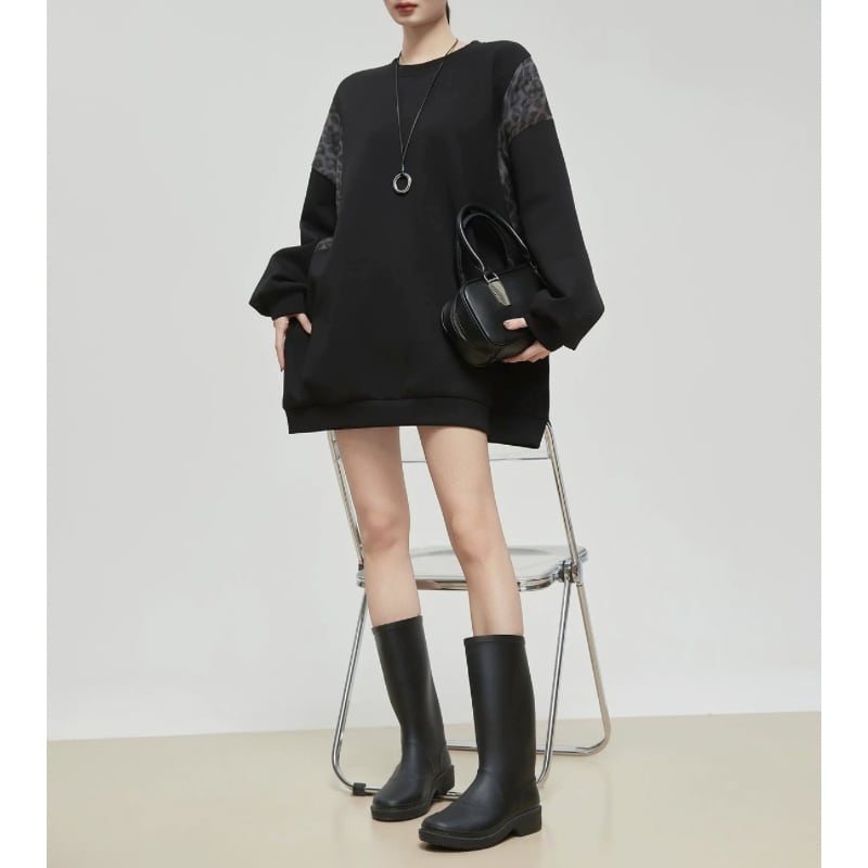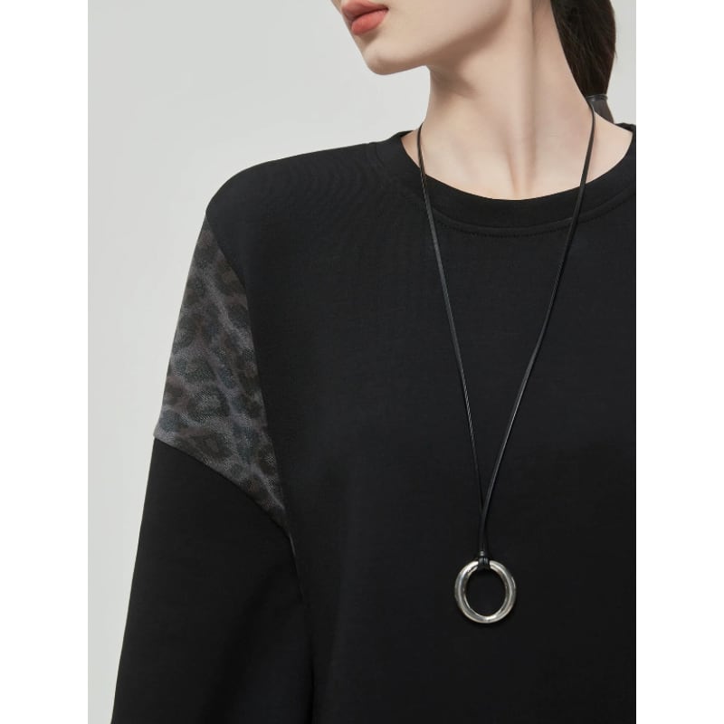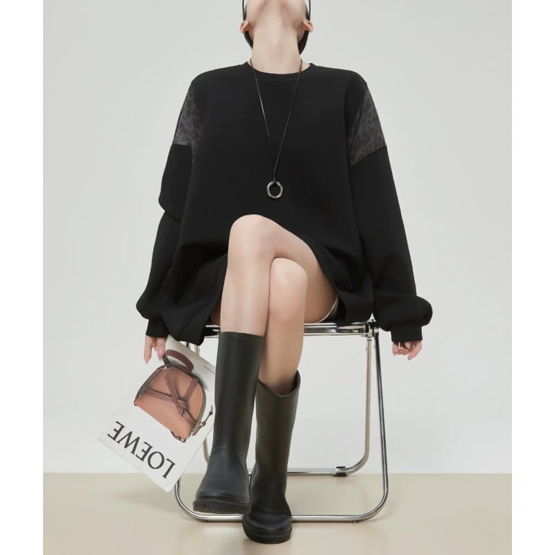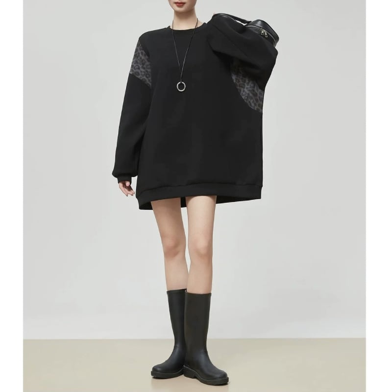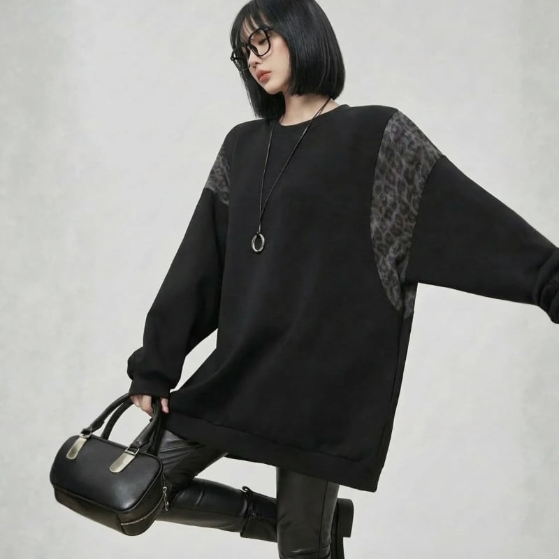 ゆったりとしたシルエットに、レオパード柄を組み合わせたスウェット。
