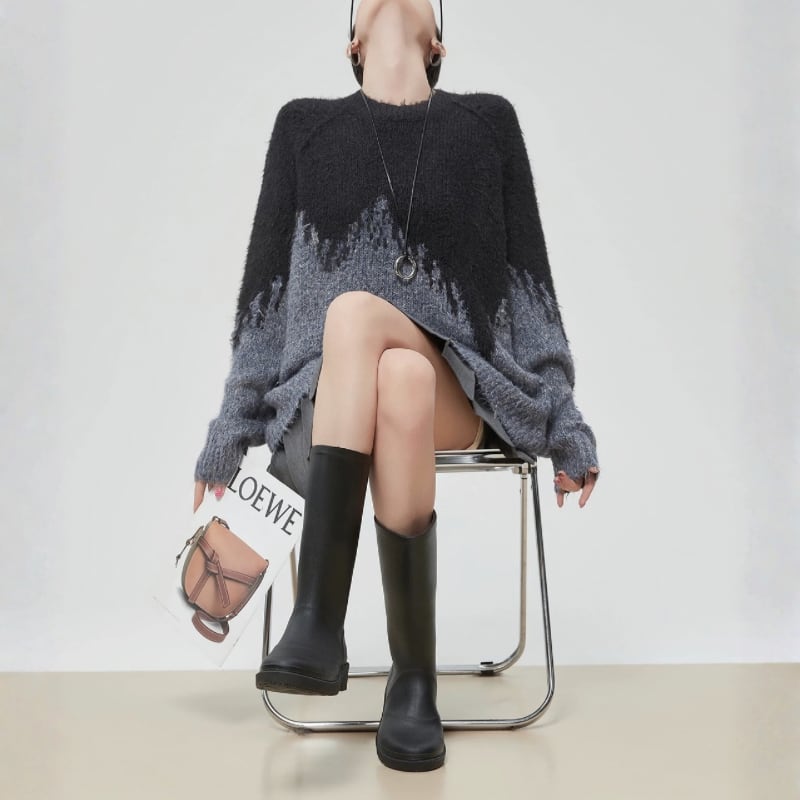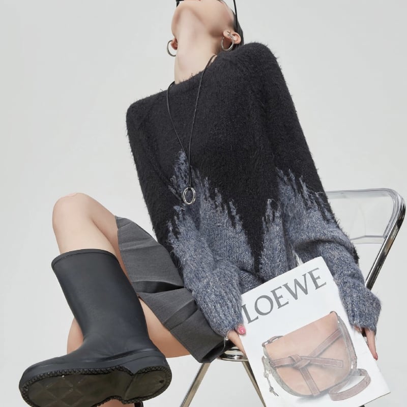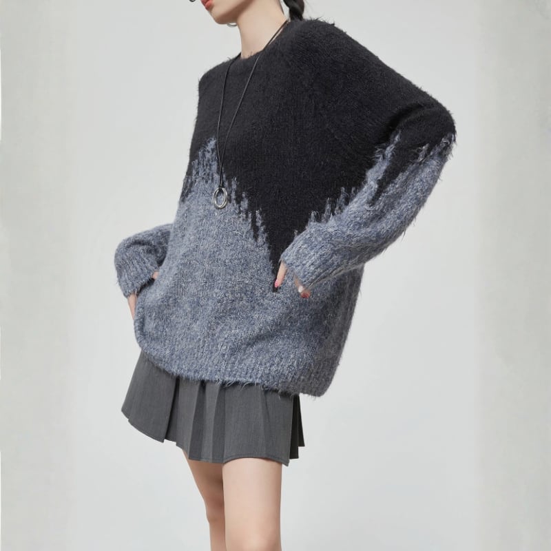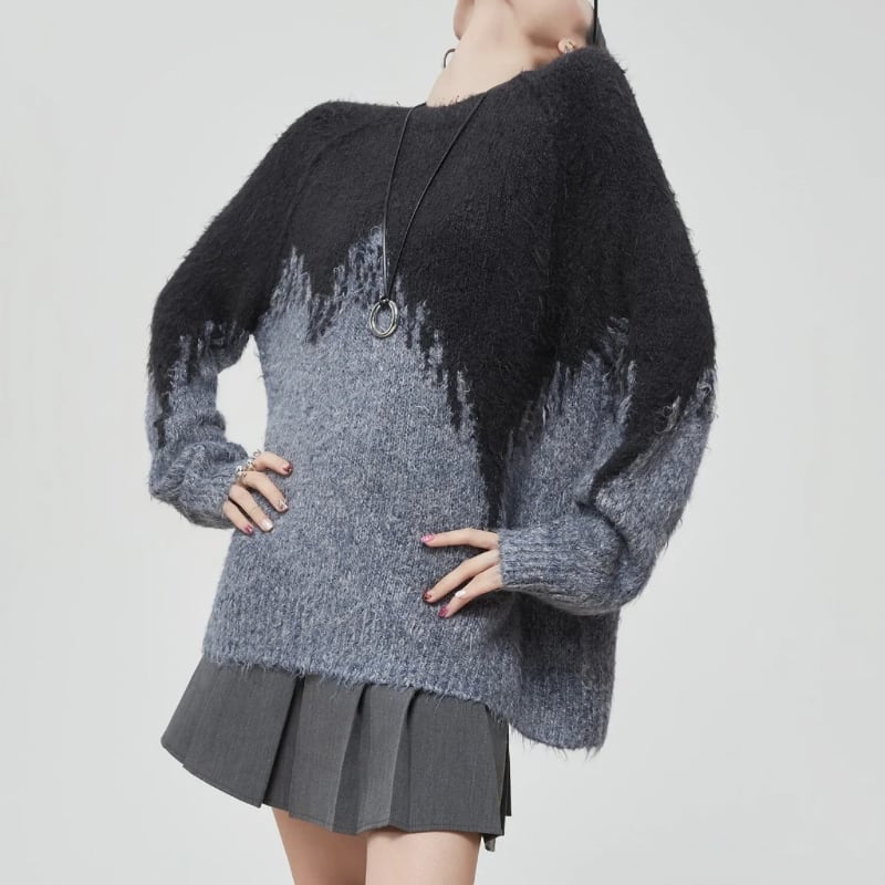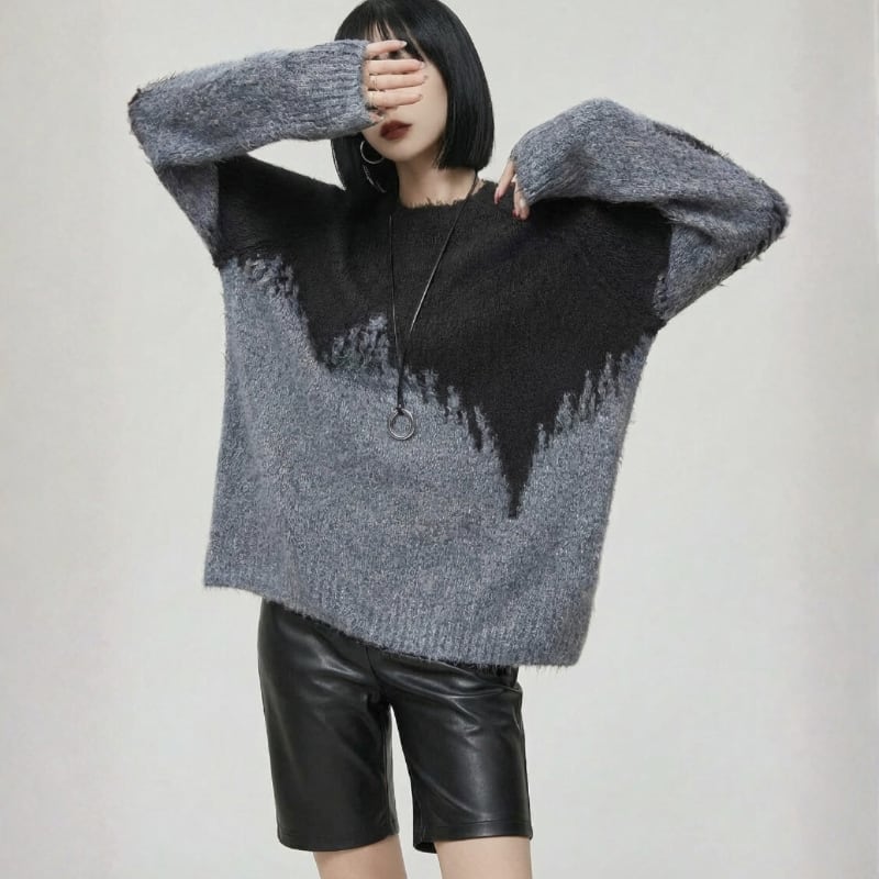 ブラック×グレーのグラデーション切り替えとラフな境目デザインが、モードな雰囲気を引き立てる一枚です。