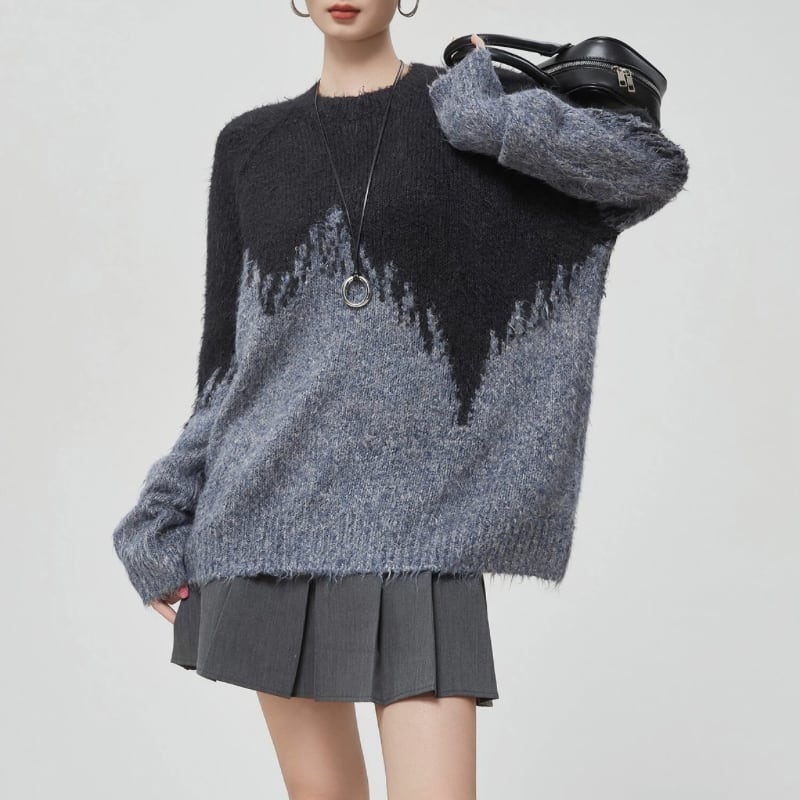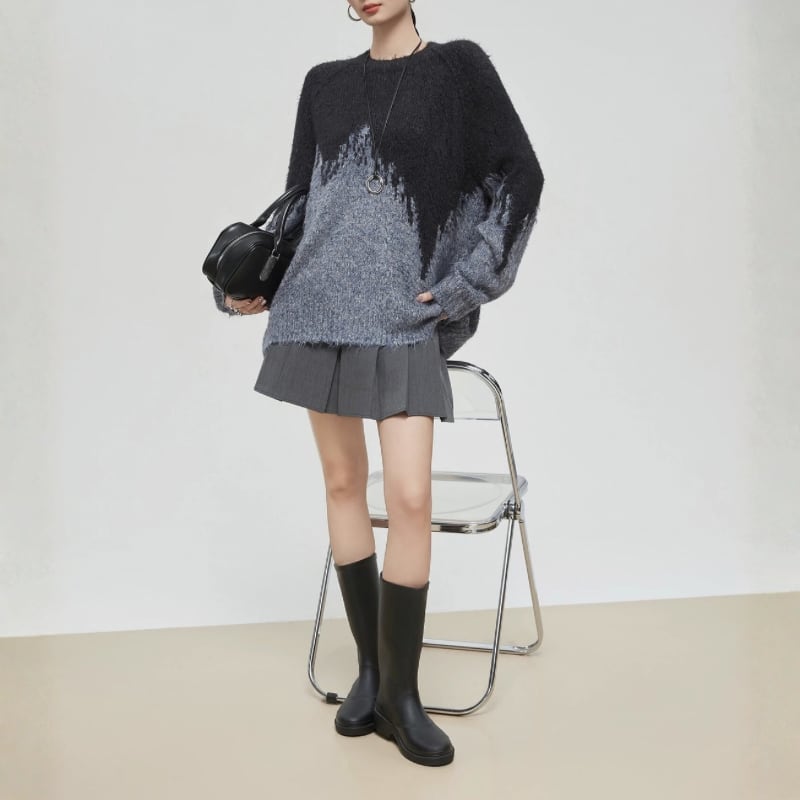 毛足のあるふんわりニットが存在感を放つオーバーシルエットのトップス。