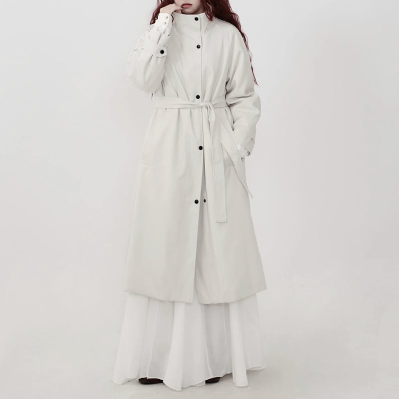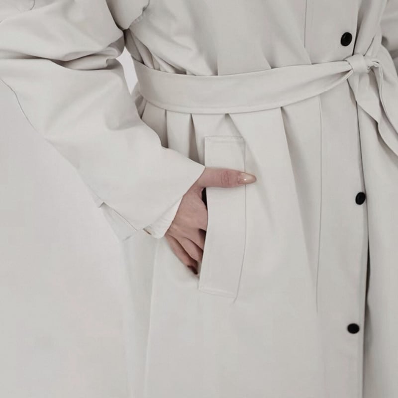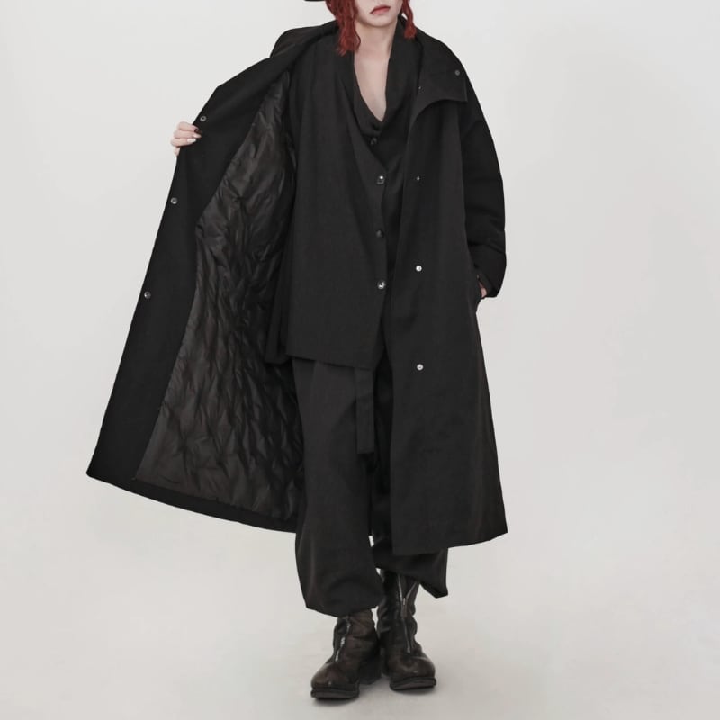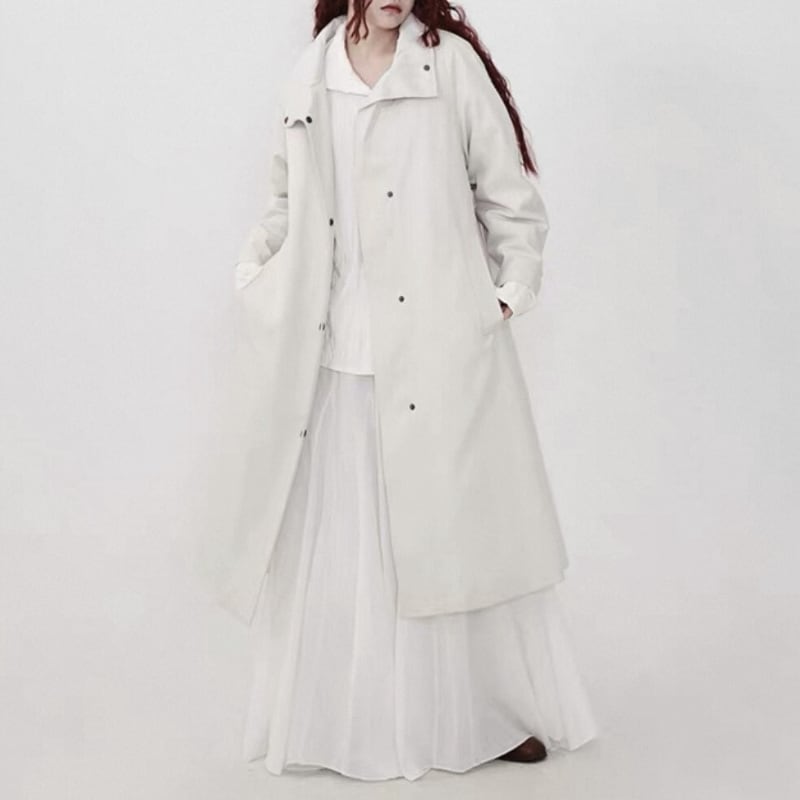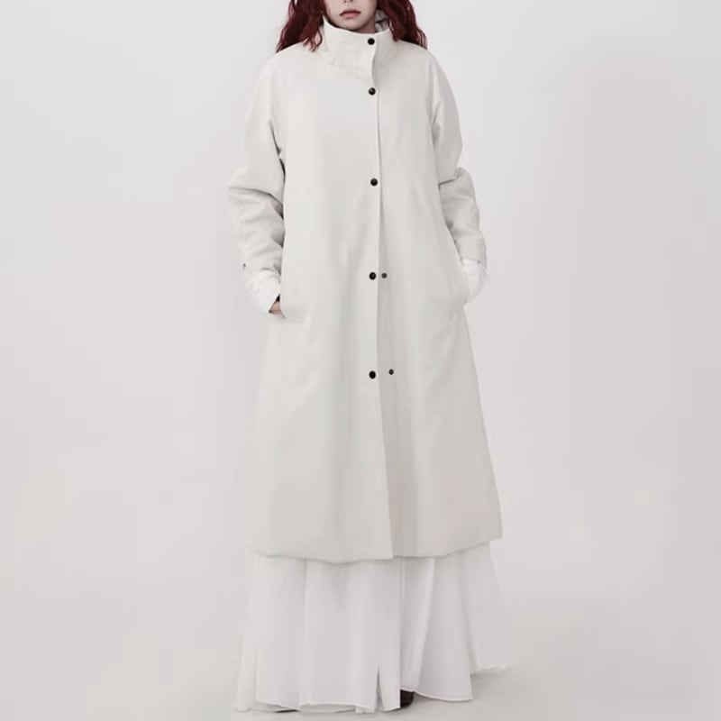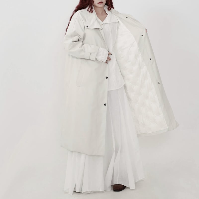 2WAYで襟の表情を楽しめる、ミニマルデザインのロングコート。