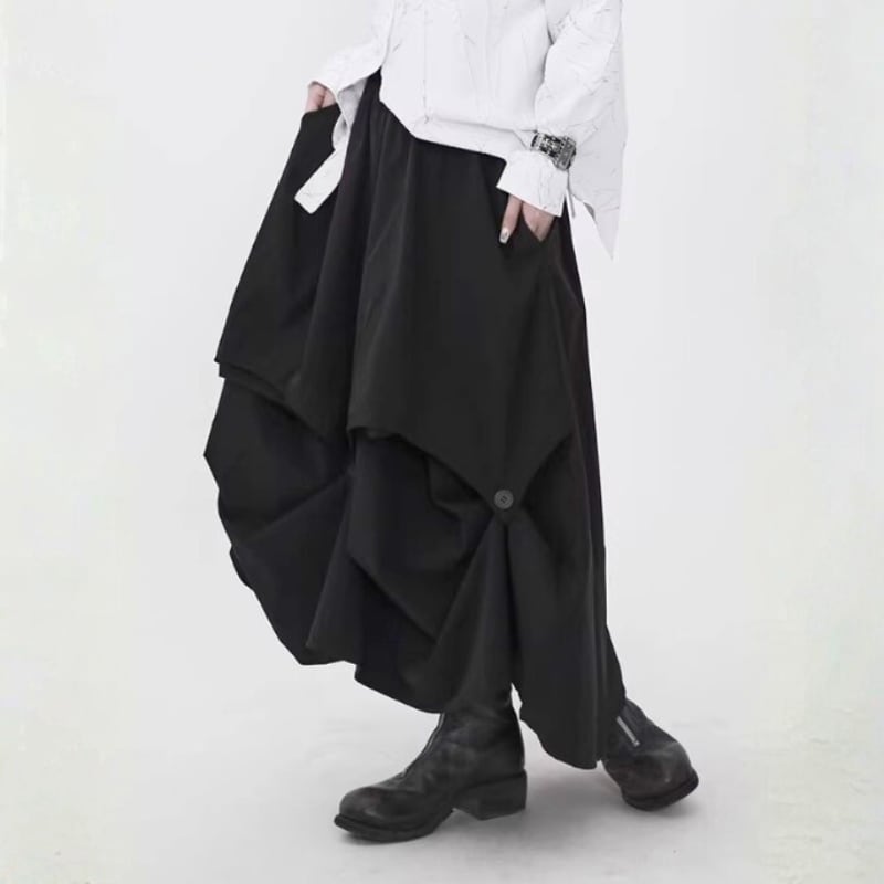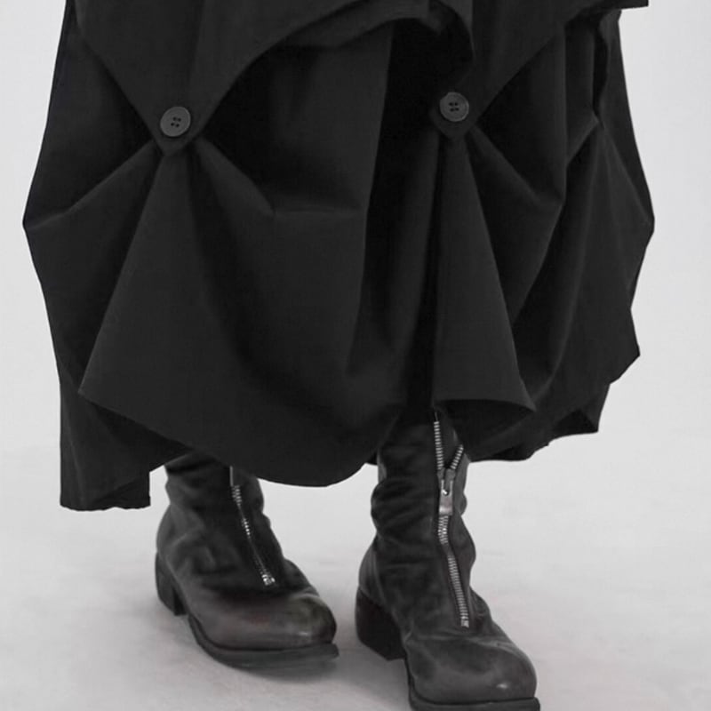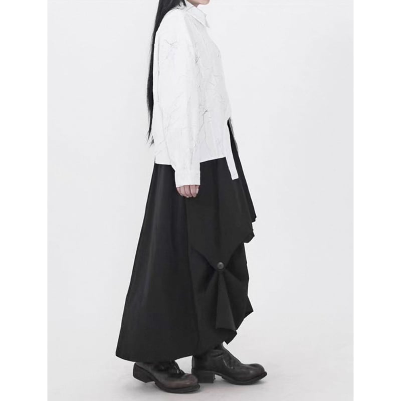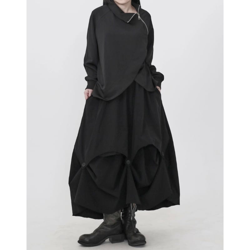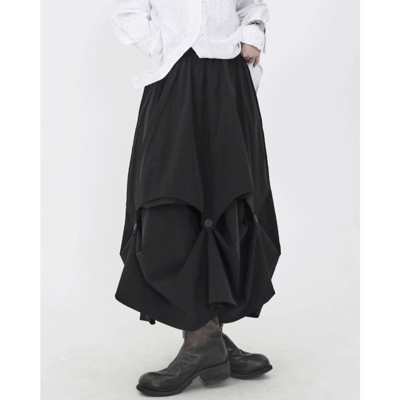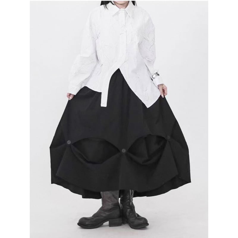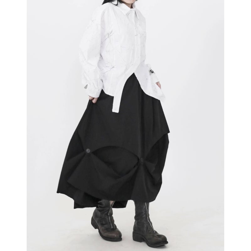 立体的なタックデザインとボタンディテールが、シルエットに奥行きを出すマキシスカート。