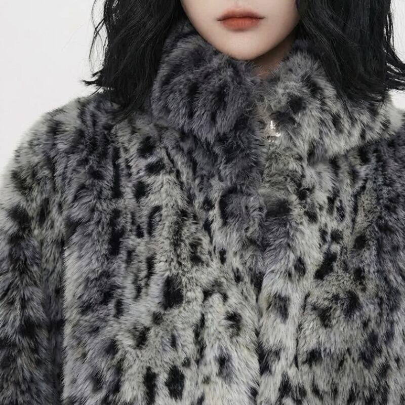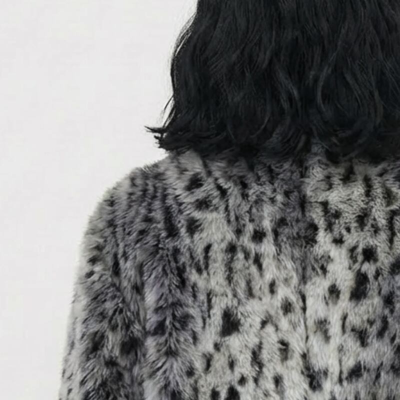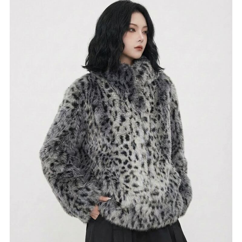 レオパード柄を全面に配した、ショート丈のファージャケット。