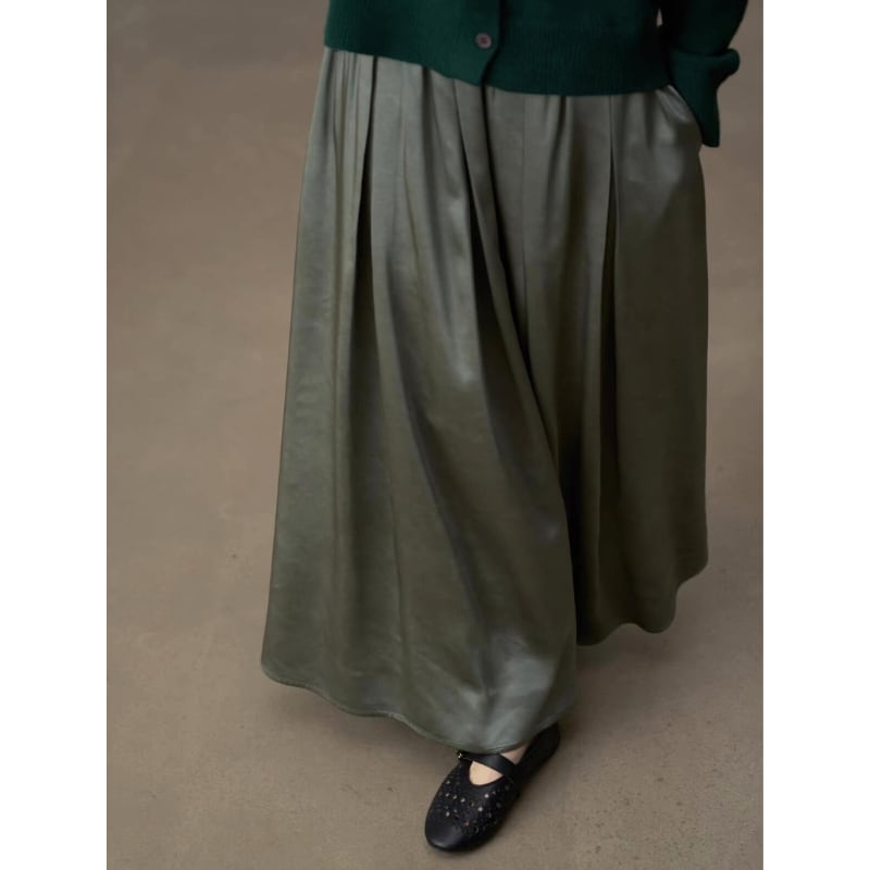 落ち感のある生地とドレープが動きに合わせて自然な表情を生み出すデザイン。