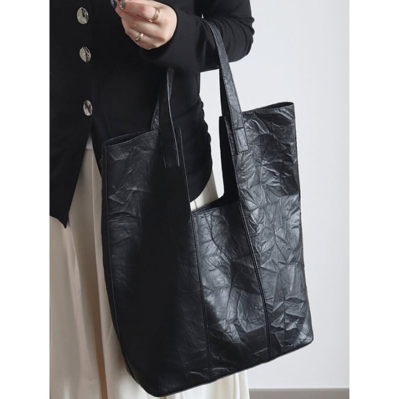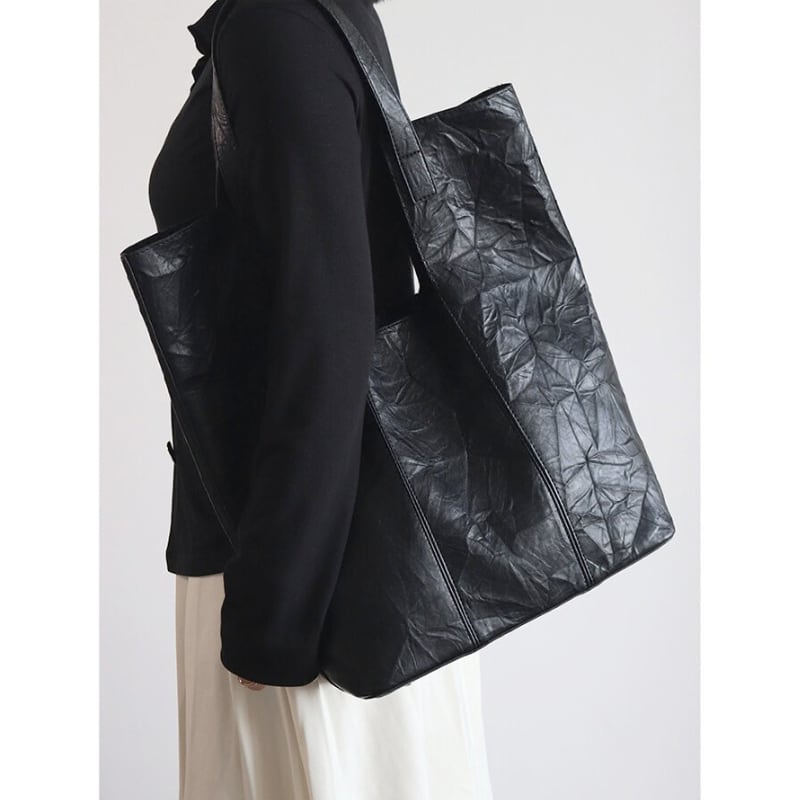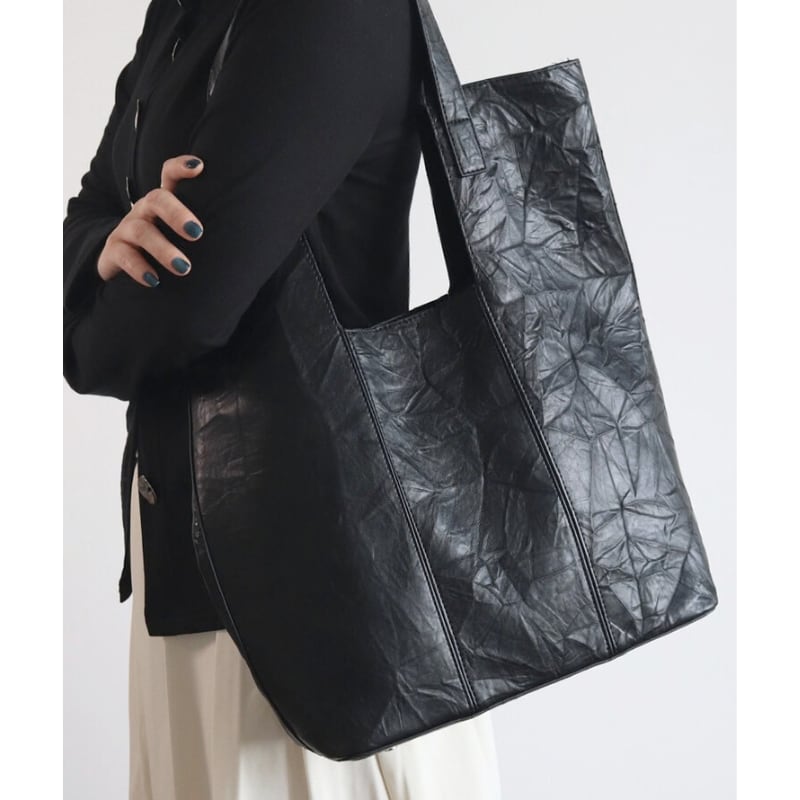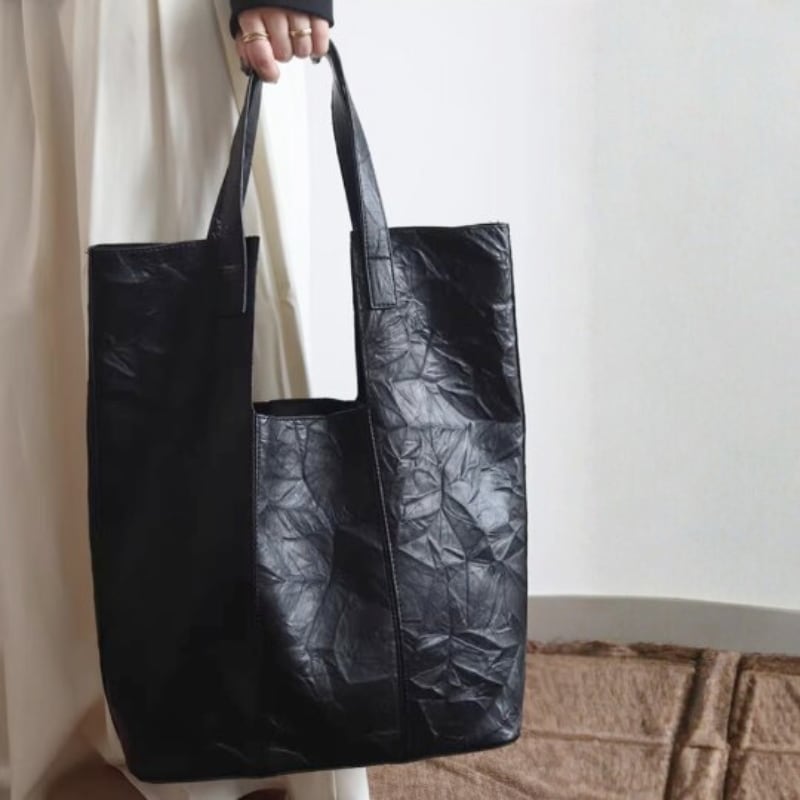 縦長のシャープなフォルムが印象的なトートバッグ。