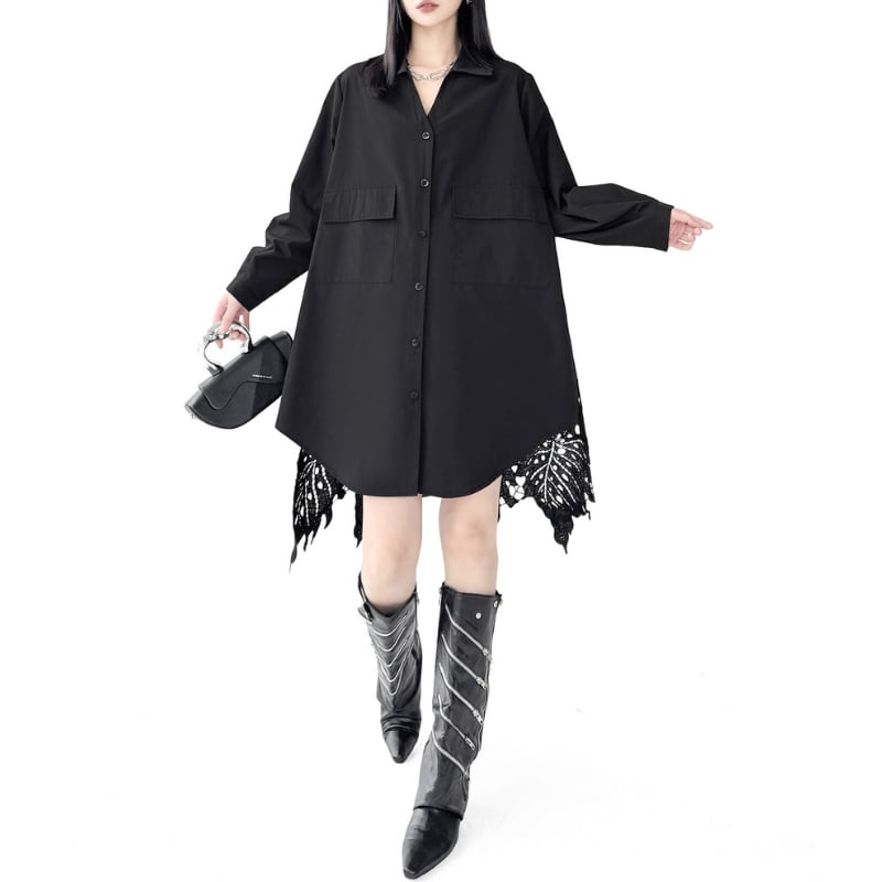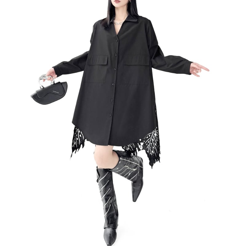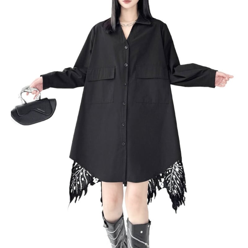 バックにレースヘムをあしらったシャツワンピース。