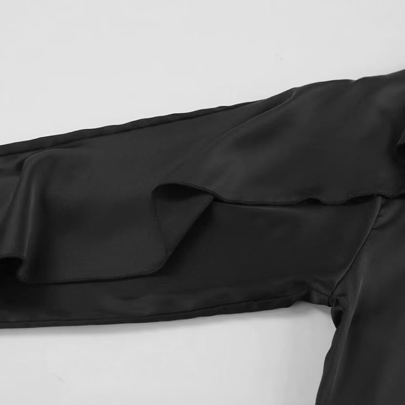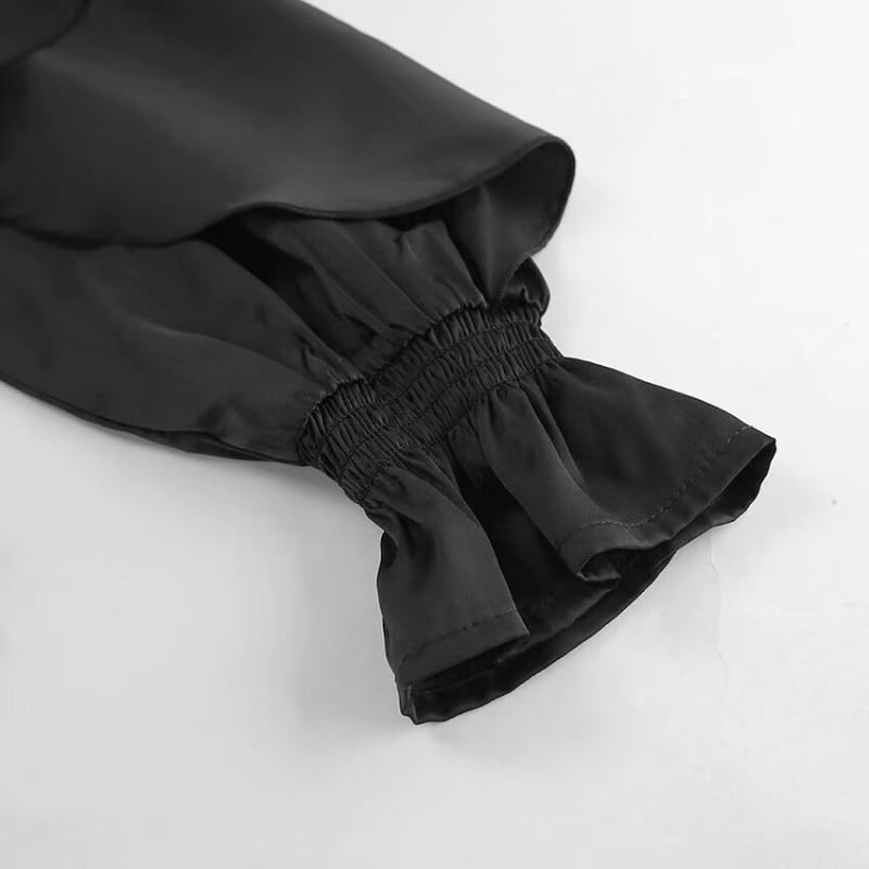 袖口のギャザーと揺れ感のあるシルエットで、存在感を引き立てる一枚です。
