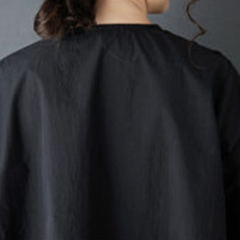 首元のカットとフロントの重なりが、全体のラインを引き立てる一枚です。