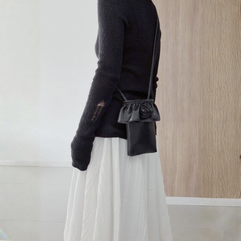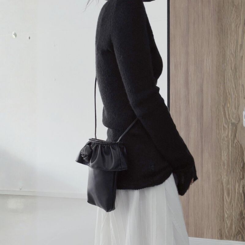 ネックまわりや袖、裾に入った抜けのあるディテールが、シンプルなラインに変化を加えます。