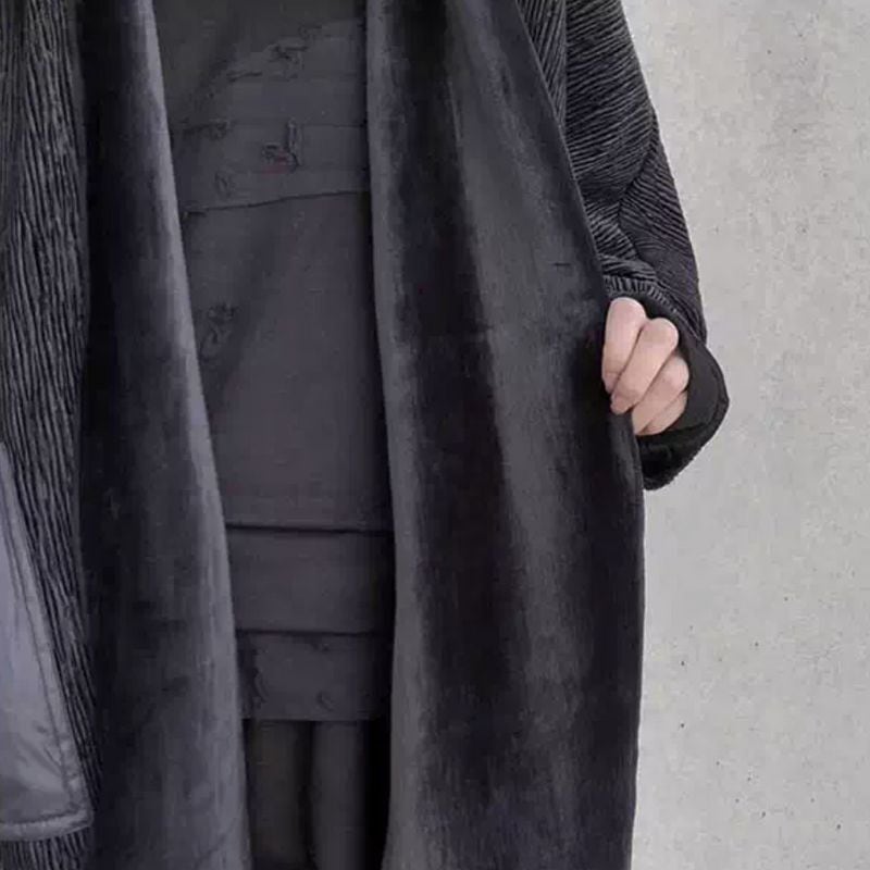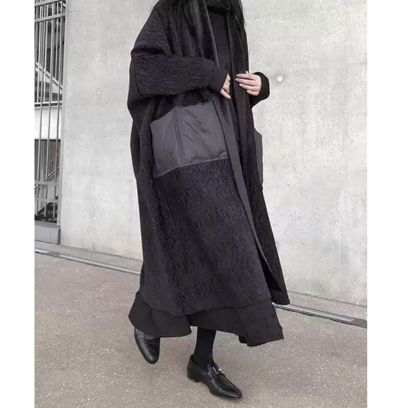 異なった生地の大きなポケットがアクセントとなっており、オシャレで機能的なアイテム。