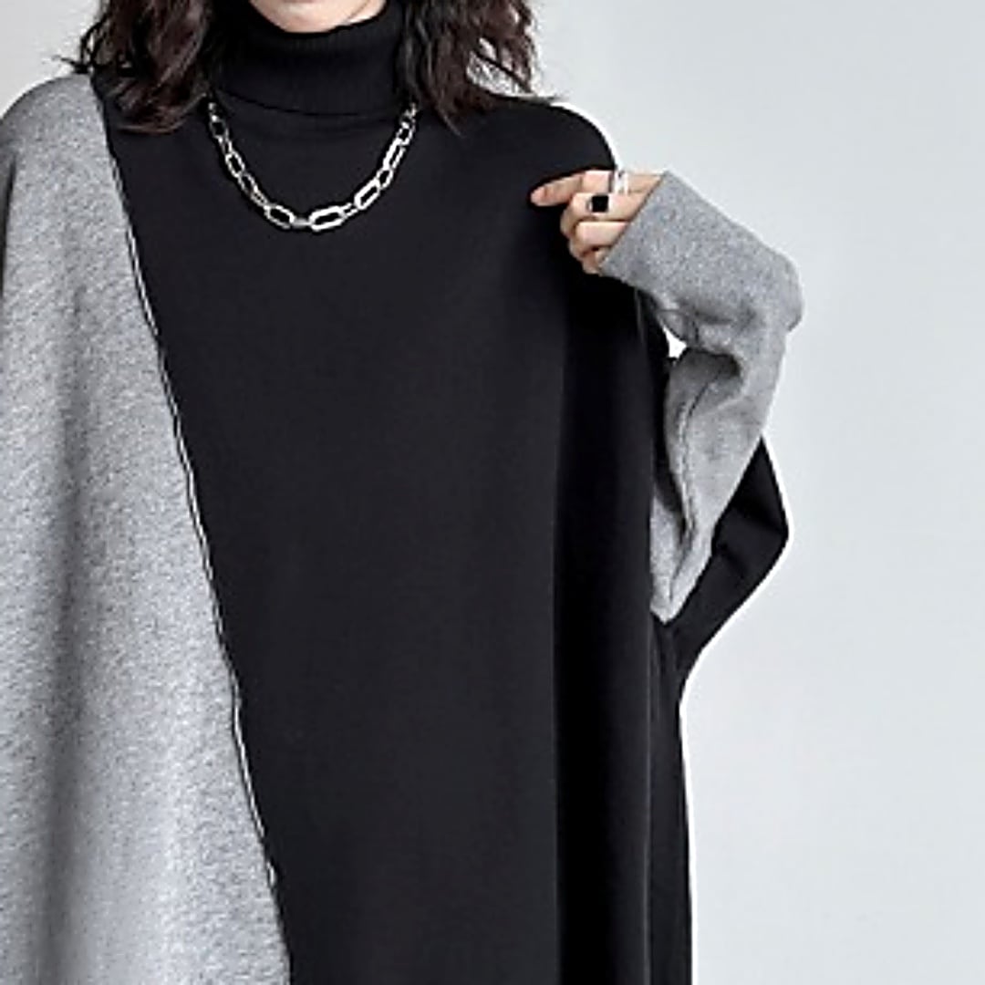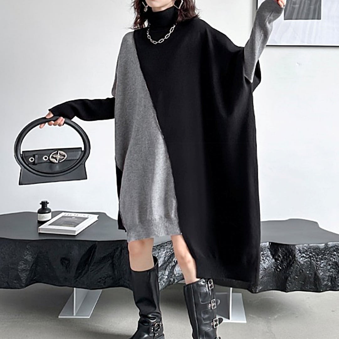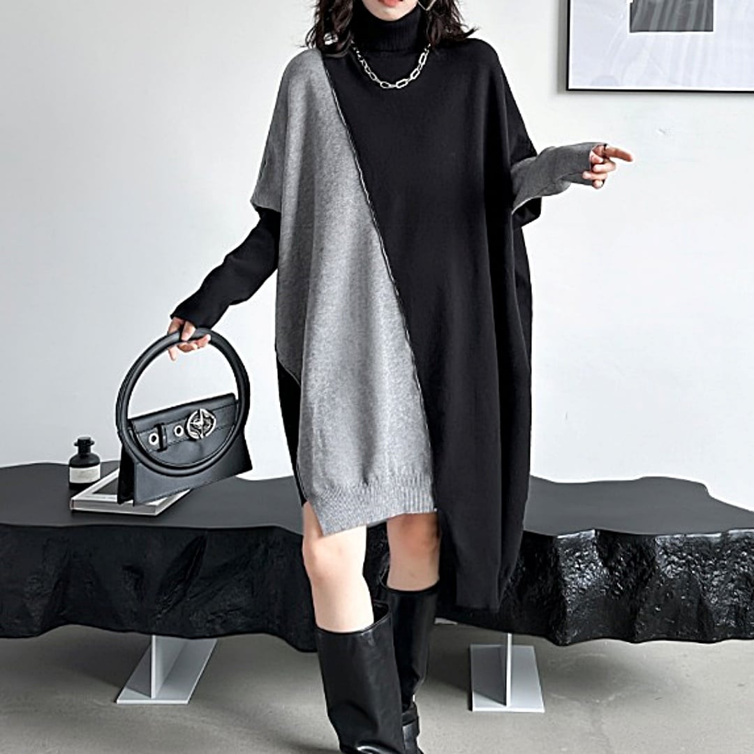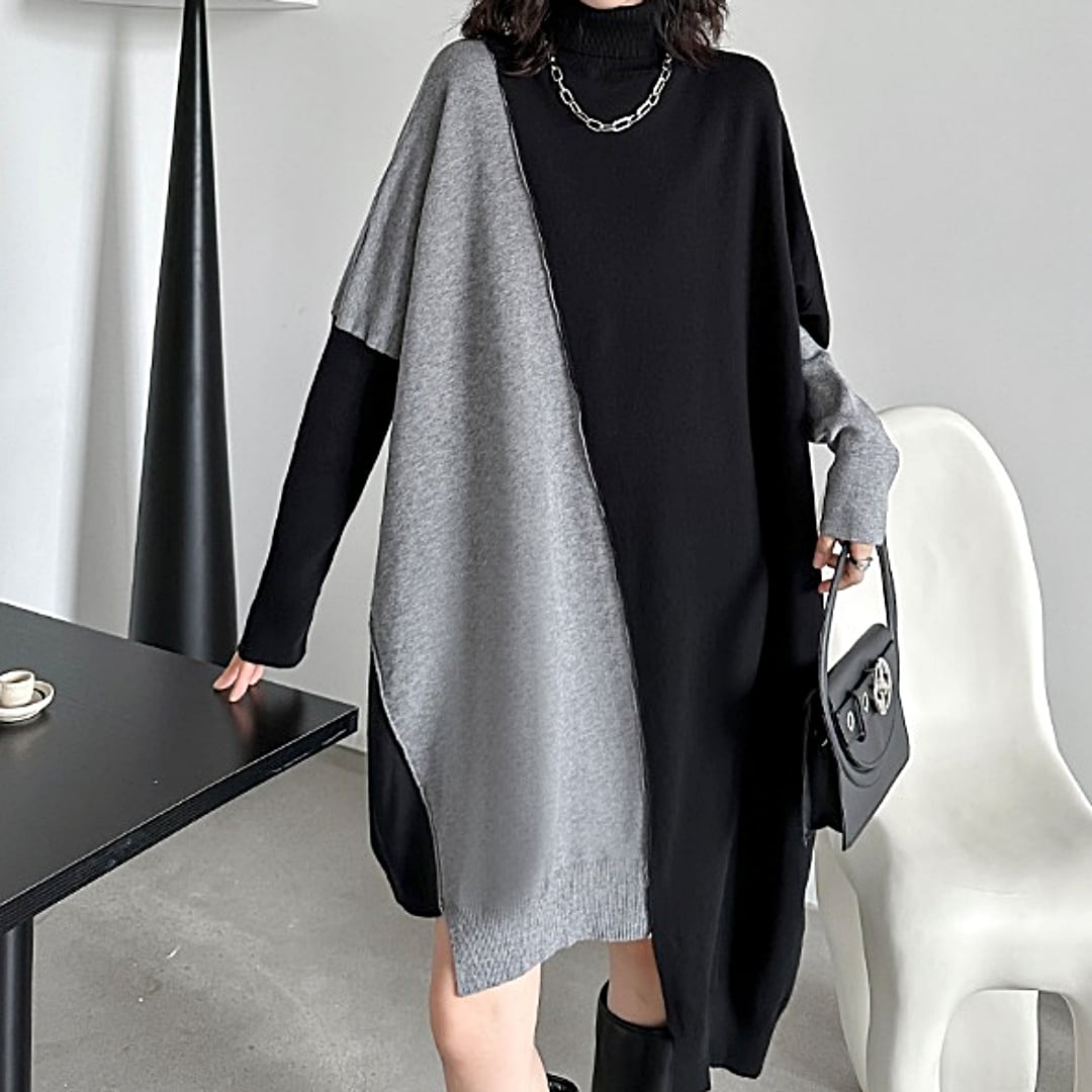 おしゃれな抜け感を放つアシメデザインとクシュっとしたタートルネックがこなれ感を高めます。